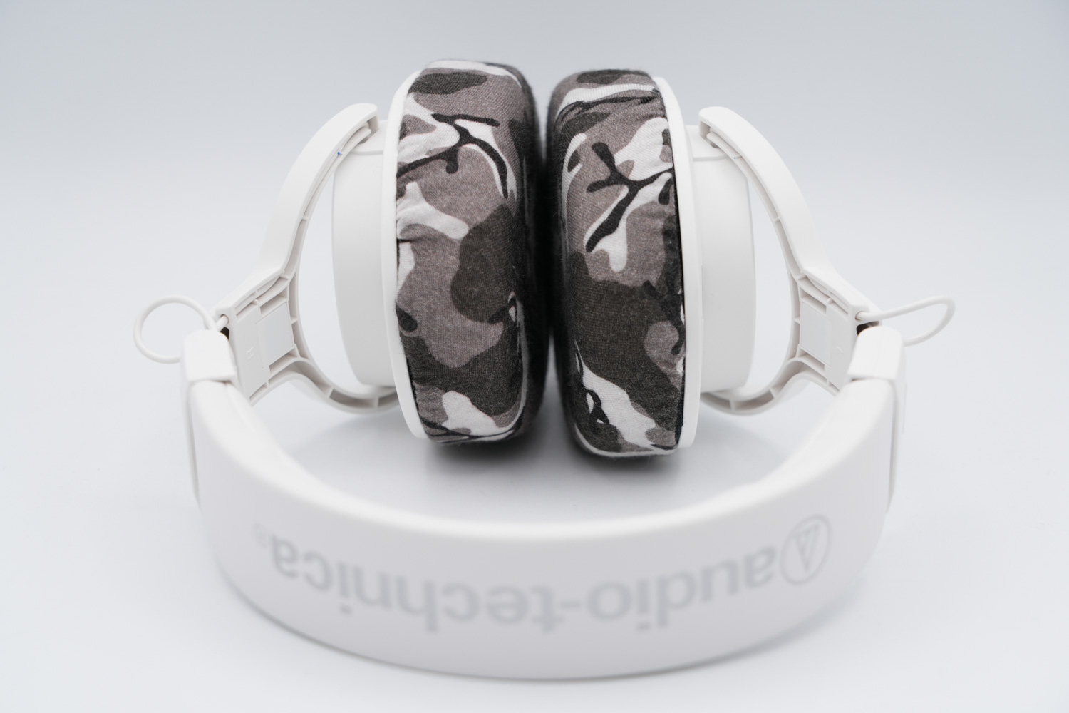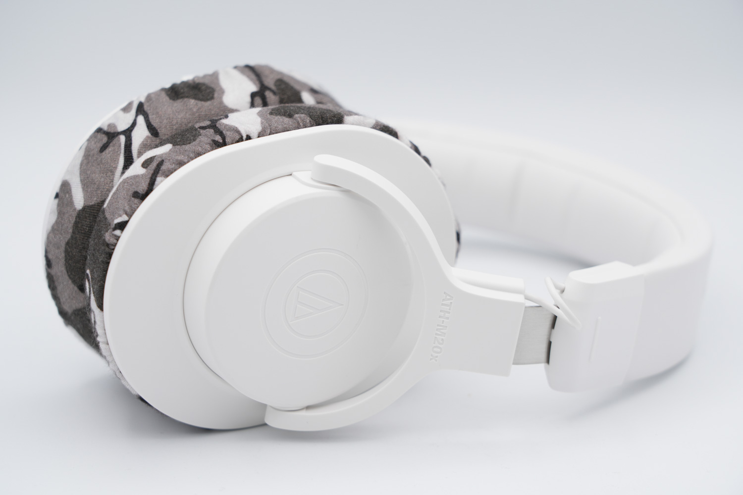 将mimimamo附加到 audio-technica ATH-M20xBT,挂载示例等时的合身感觉。 (*照片为L尺寸挂载示例)