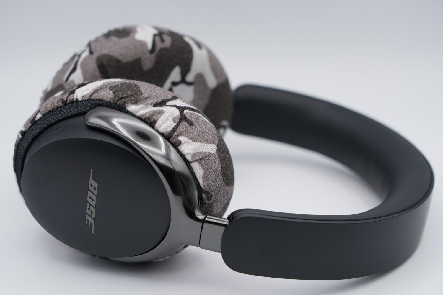 将mimimamo附加到 Bose Quiet Comfort Ultra Headphones 2nd Gen,挂载示例等时的合身感觉。 (*照片为L尺寸挂载示例)