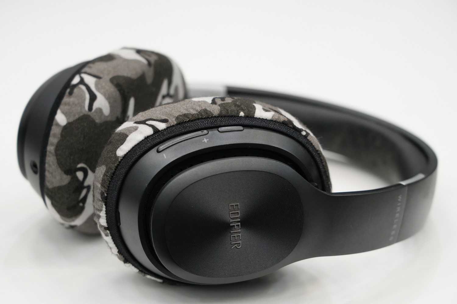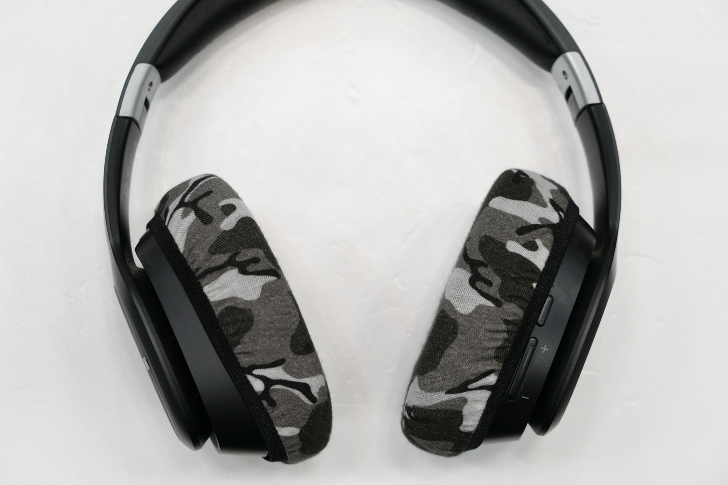 将mimimamo附加到 EDIFIER W820BT,挂载示例等时的合身感觉。 (*照片为L尺寸挂载示例)