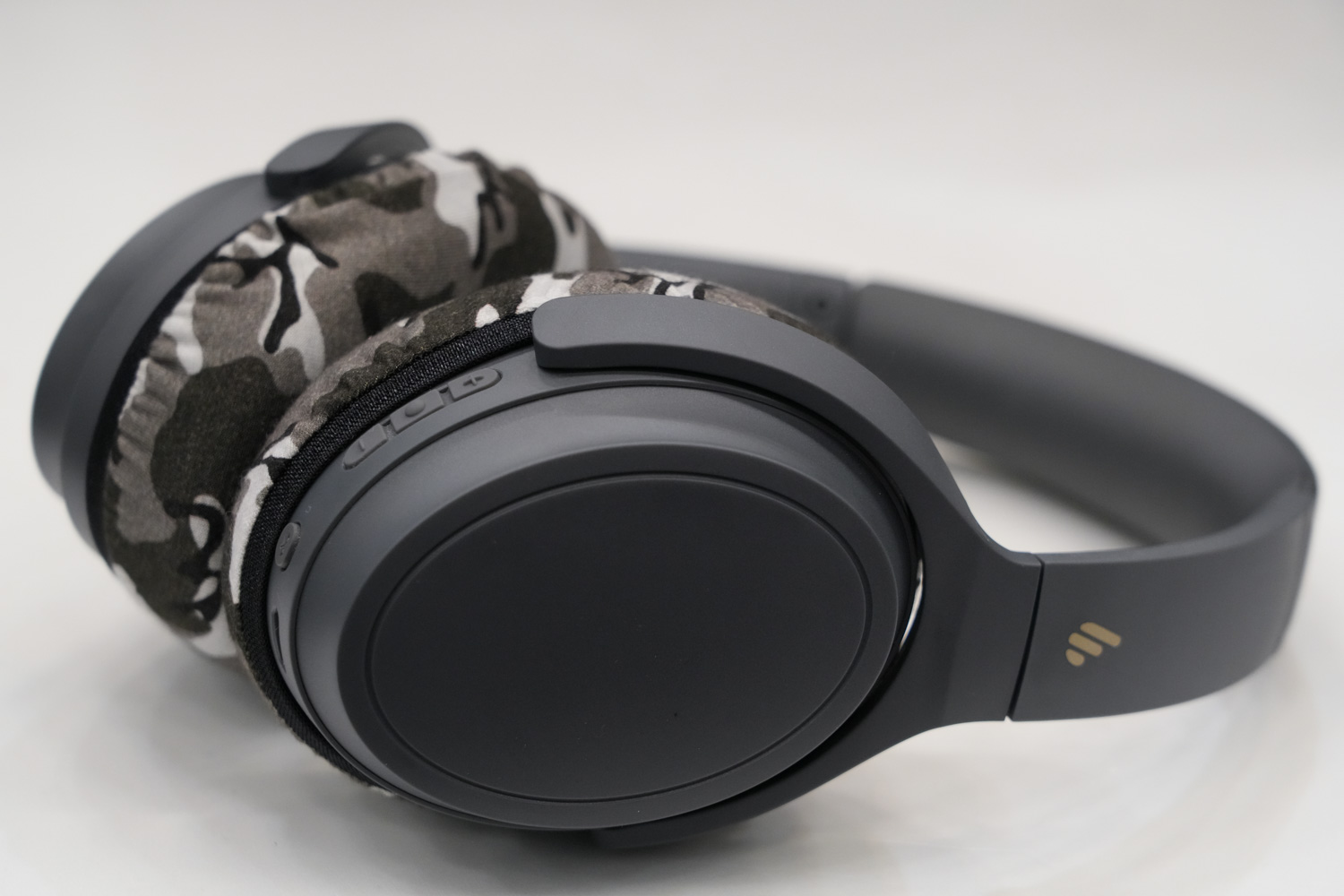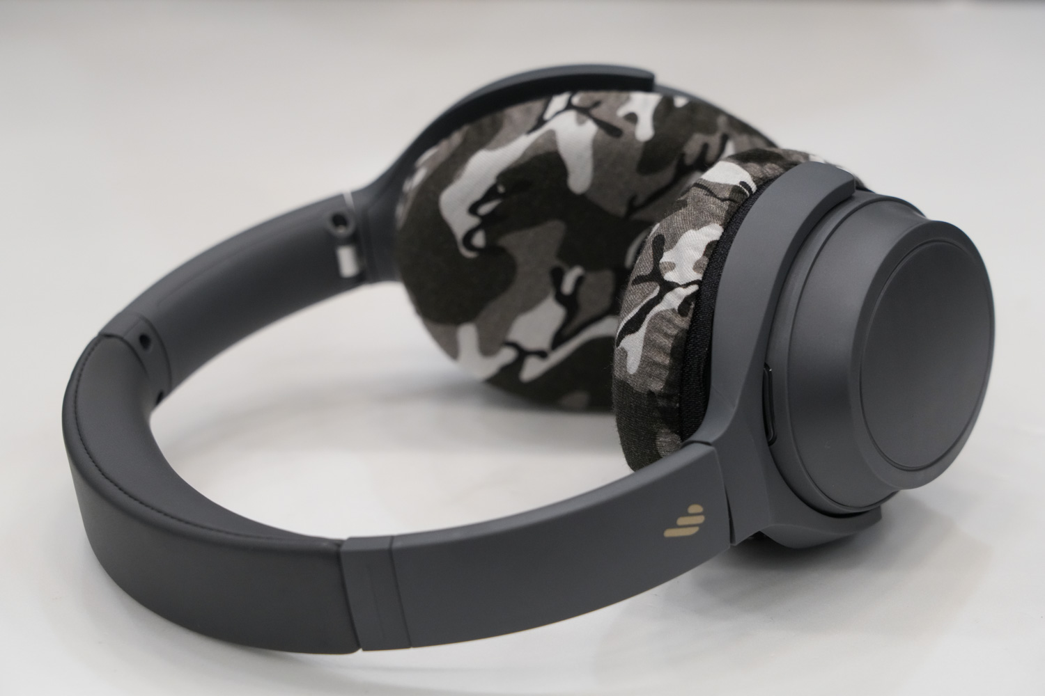 将mimimamo附加到 EDIFIER WH700NB,挂载示例等时的合身感觉。 (*照片为L尺寸挂载示例)