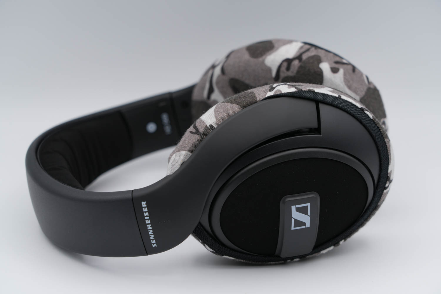 将mimimamo附加到 SENNHEISER HD569,挂载示例等时的合身感觉。 (*照片为L尺寸挂载示例)