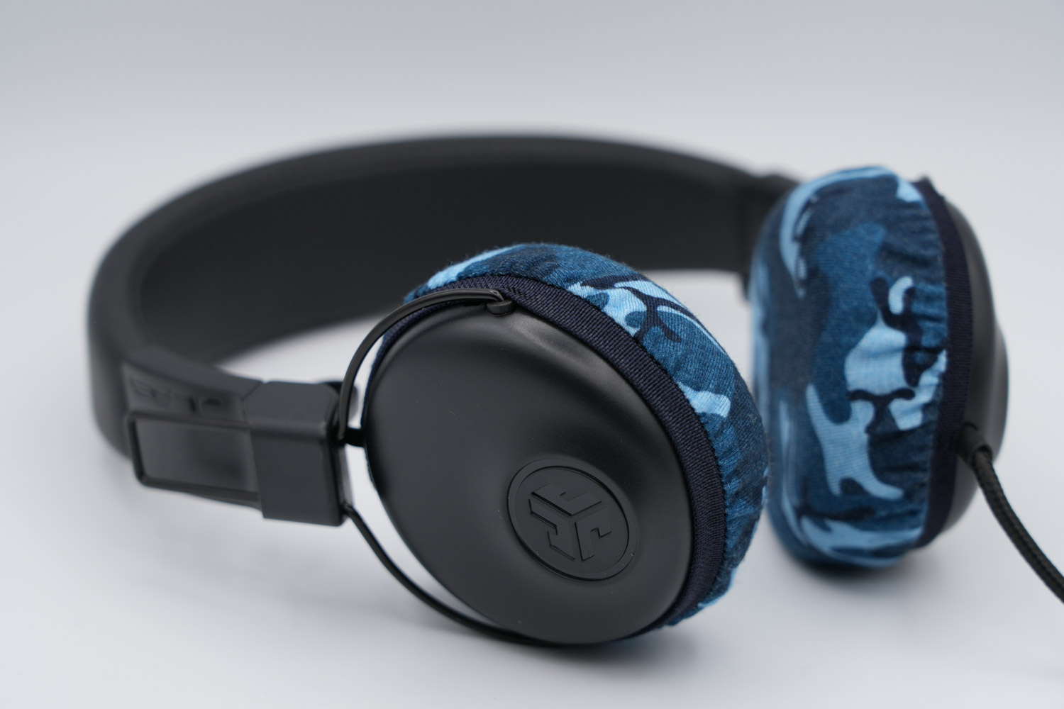 JLab Studio On-Earのイヤーパッドの修理や装着感の改善にmimimamoを使用する場合(※写真はMサイズの装着例)