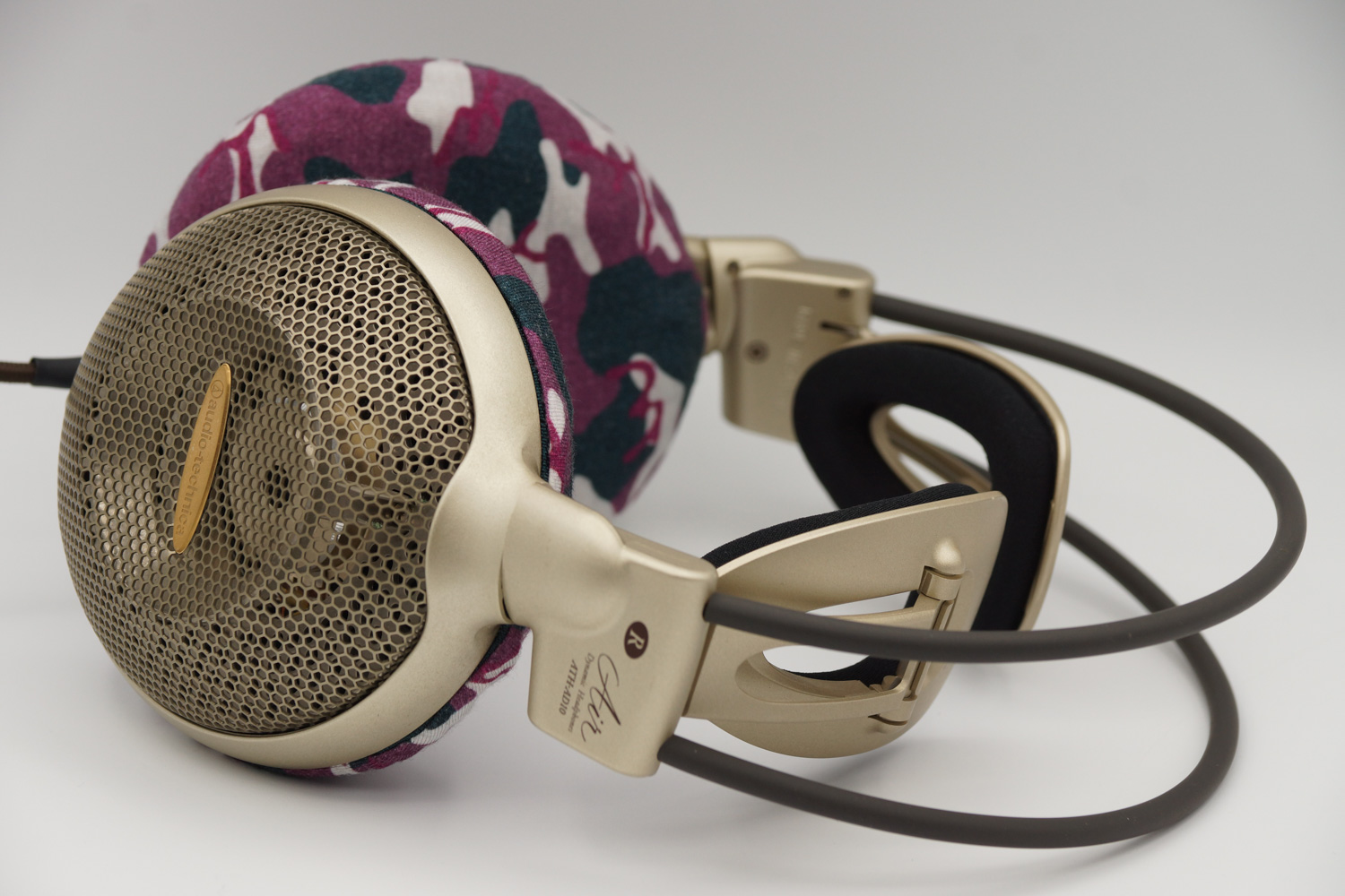 mimimamo를 부착했을 때의 착용감 audio-technica ATH-AD10의 이어패드 수리 및 착용감 개선을 위해 mimimamo를 사용하는 경우 (※사진은 L 사이즈 착용 예시)