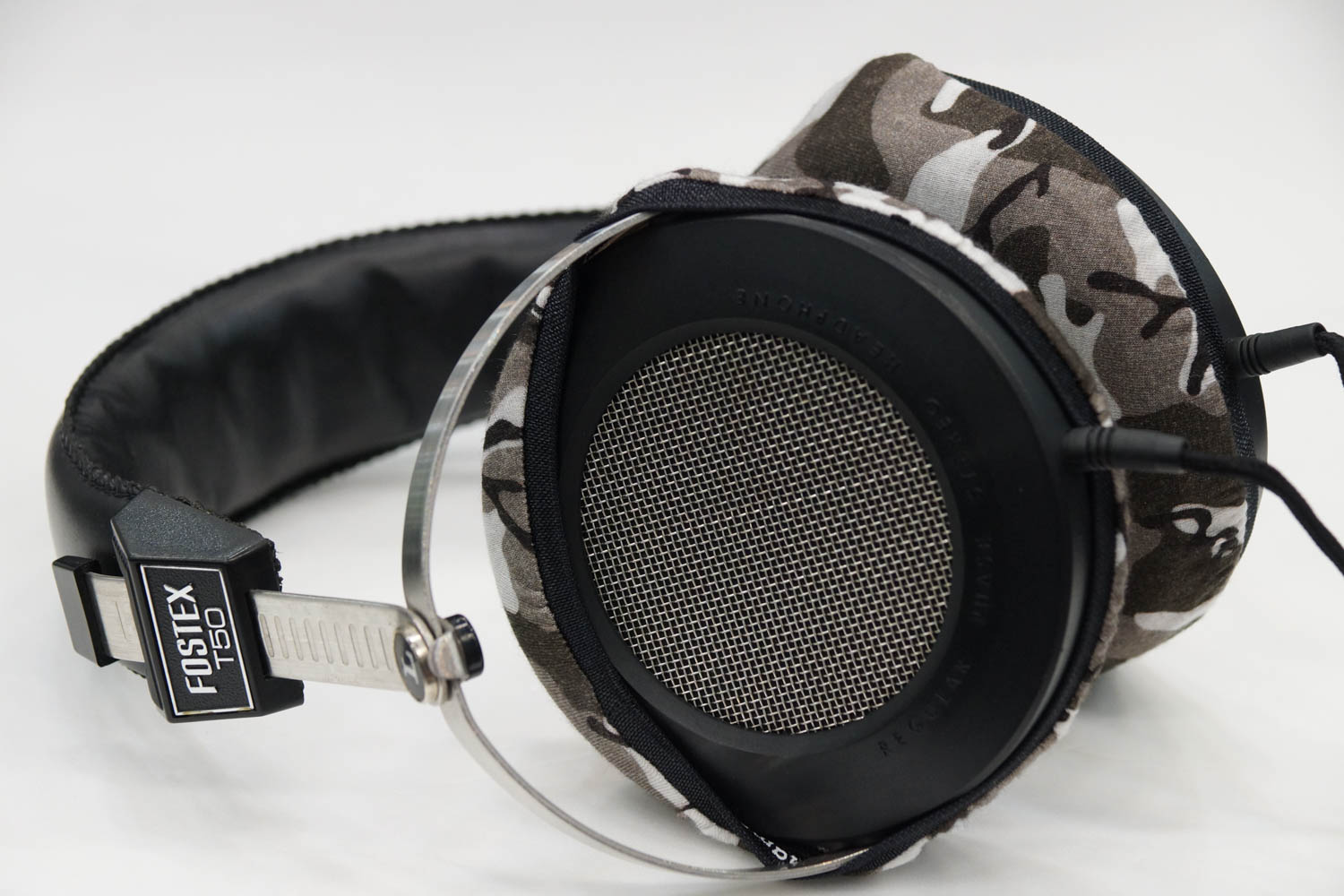 mimimamo를 부착했을 때의 착용감 Fostex T50의 이어패드 수리 및 착용감 개선을 위해 mimimamo를 사용하는 경우 (※사진은 L 사이즈 착용 예시)
