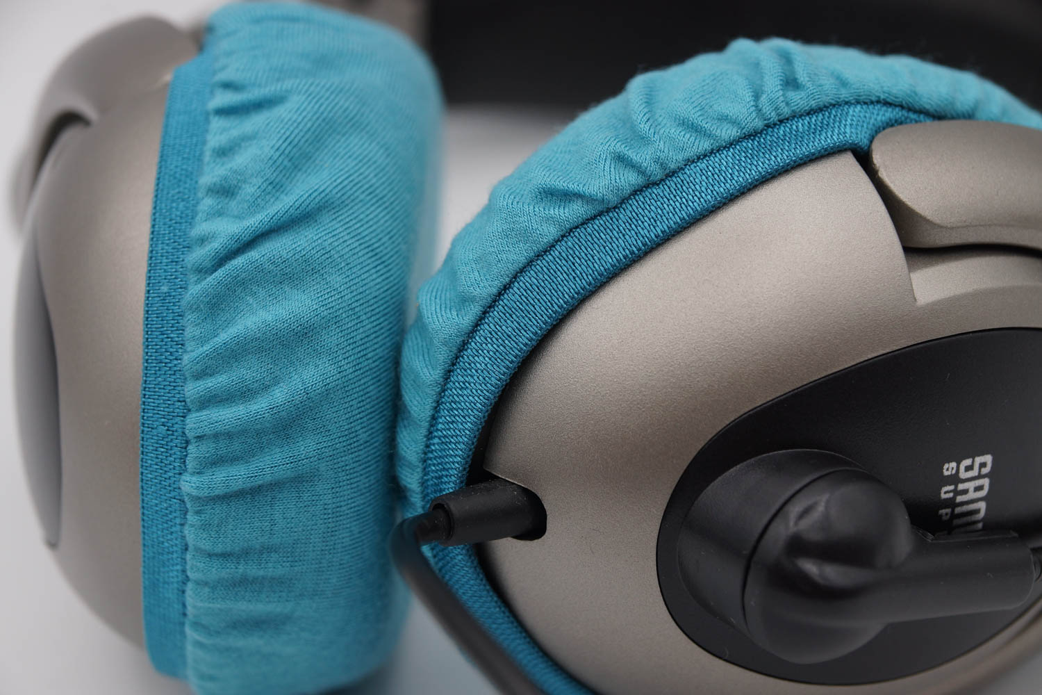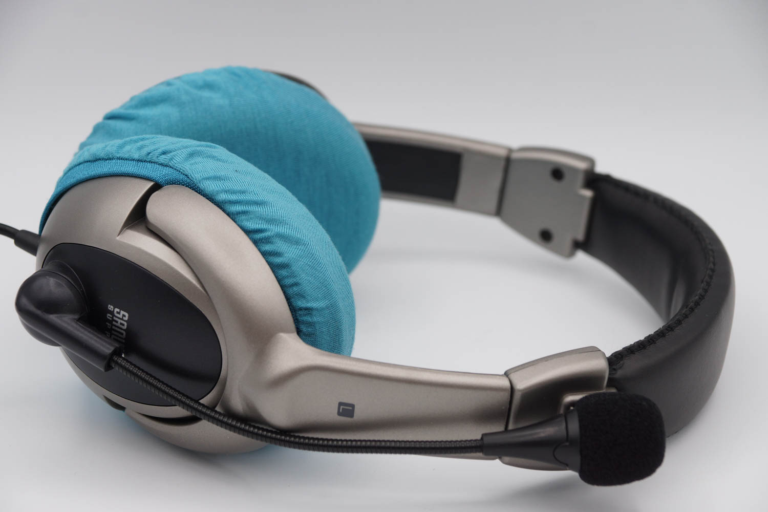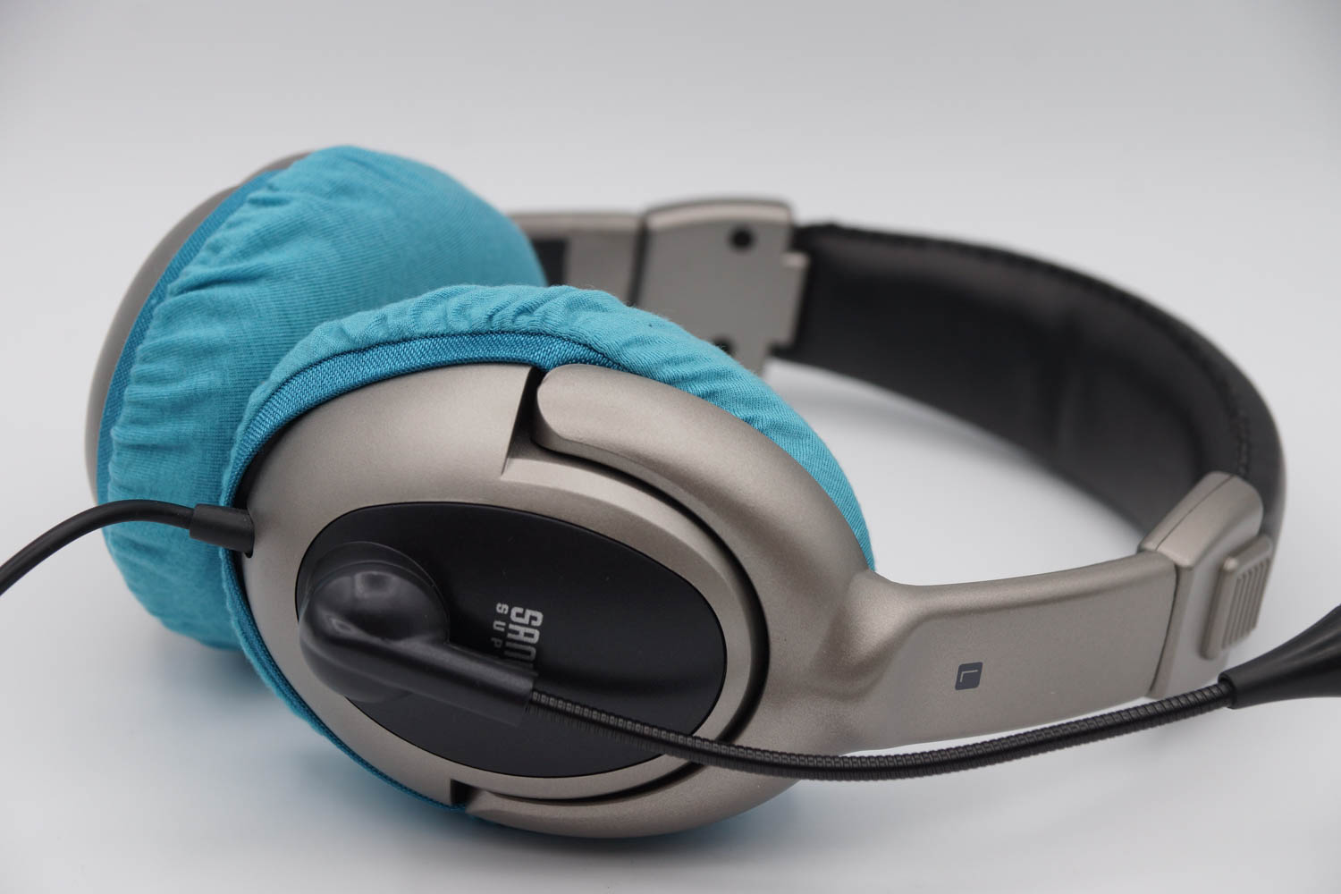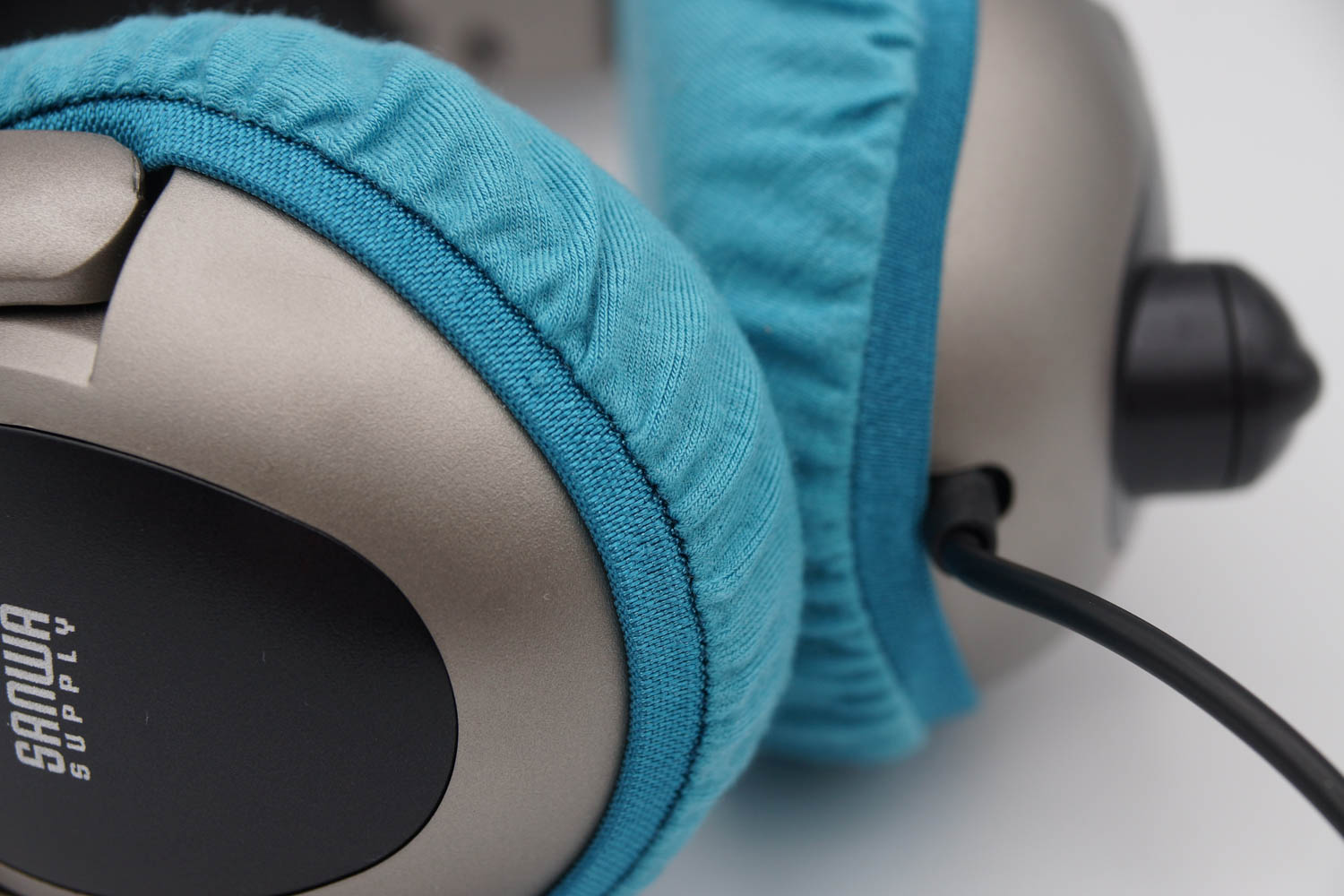 mimimamo를 부착했을 때의 착용감 SANWA SUPPLY MM-HSU10GMN의 이어패드 수리 및 착용감 개선을 위해 mimimamo를 사용하는 경우 (※사진은 L 사이즈 착용 예시)