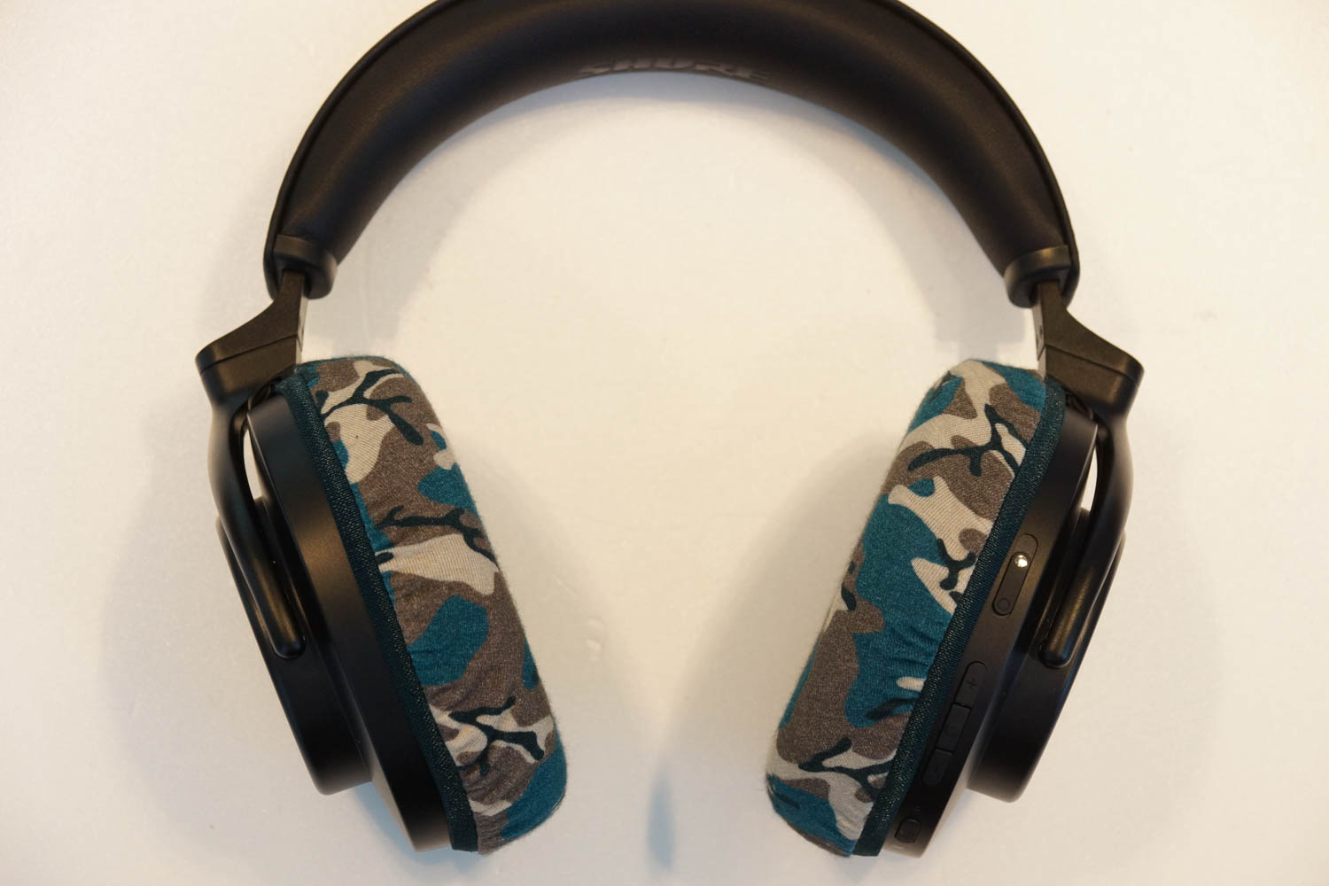 mimimamo를 부착했을 때의 착용감 SHURE AONIC 50 GEN 2의 이어패드 수리 및 착용감 개선을 위해 mimimamo를 사용하는 경우 (※사진은 L 사이즈 착용 예시)