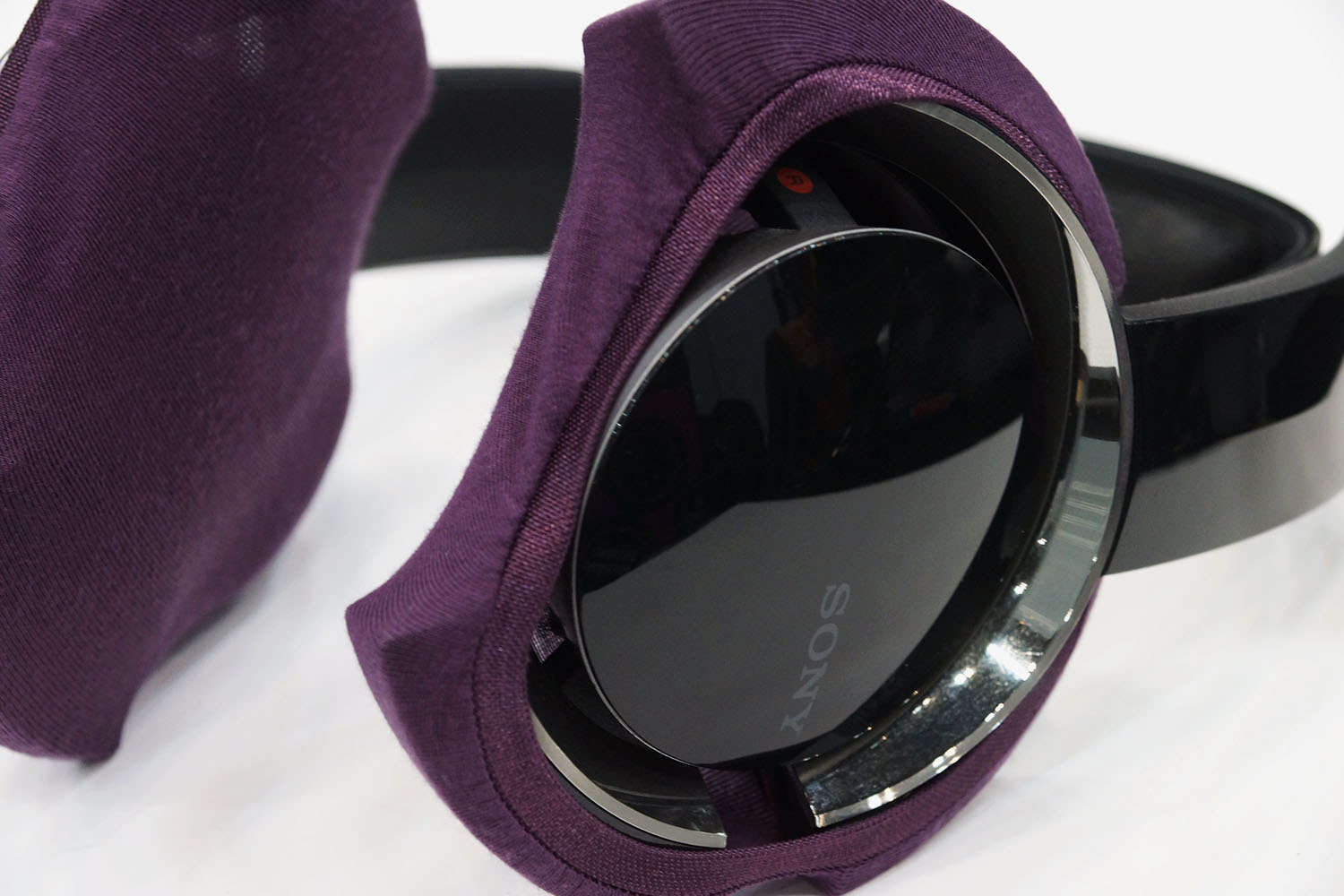 mimimamo를 부착했을 때의 착용감 SONY DR-GA210의 이어패드 수리 및 착용감 개선을 위해 mimimamo를 사용하는 경우 (※사진은 L 사이즈 착용 예시*촬영 협조:제22회 헤드폰 대응표 협력 캠페인 참가자 여러분)