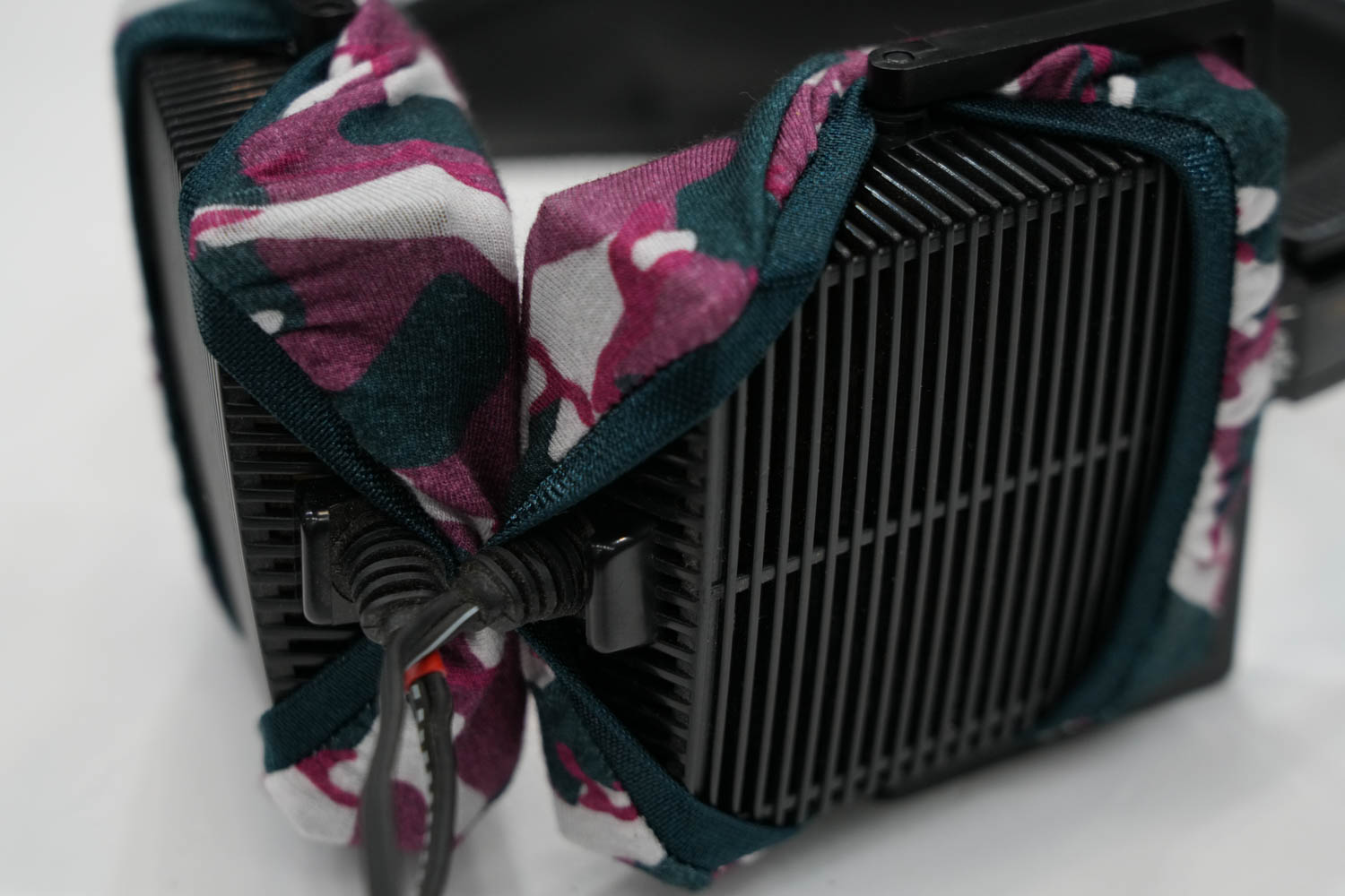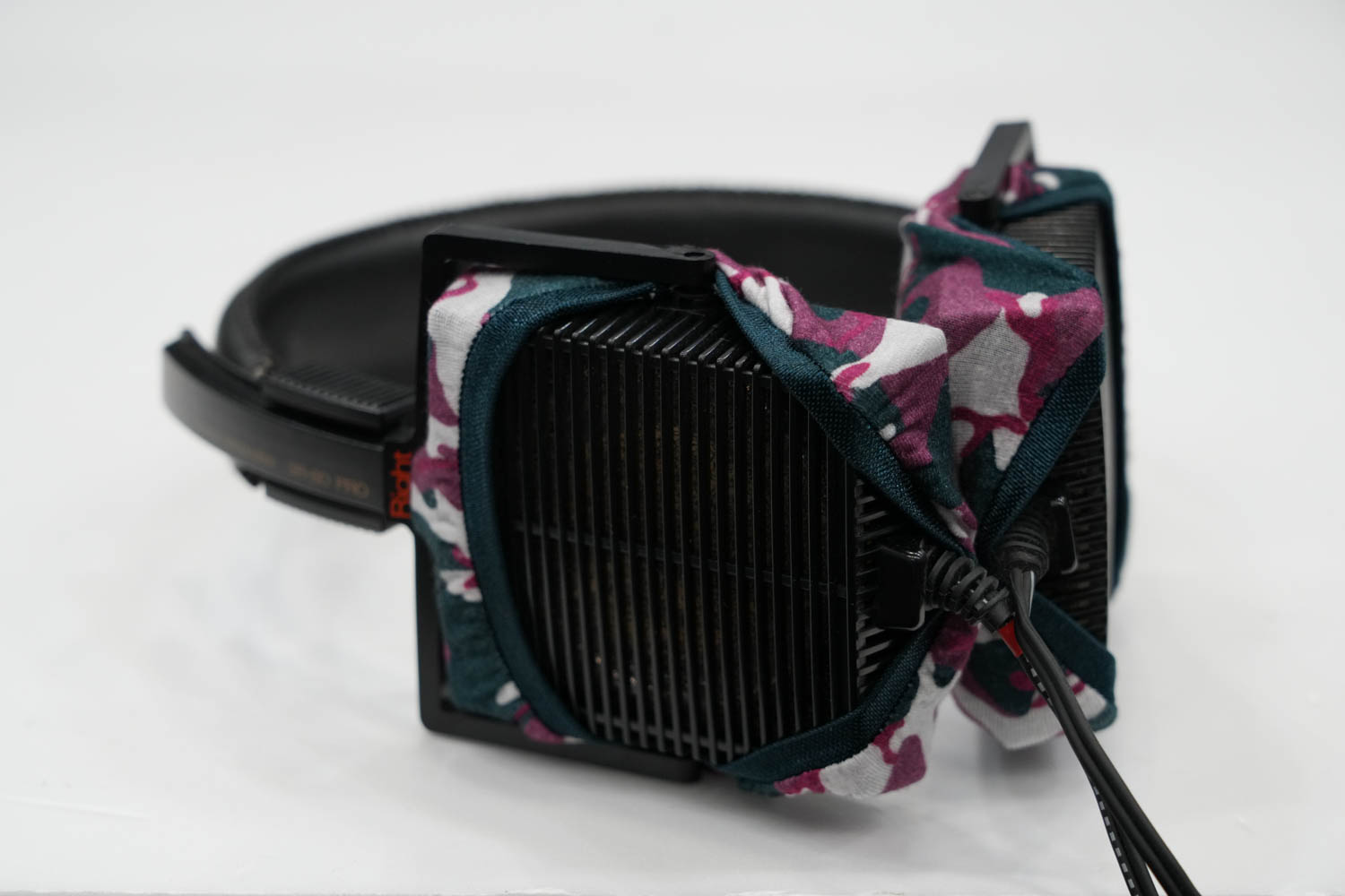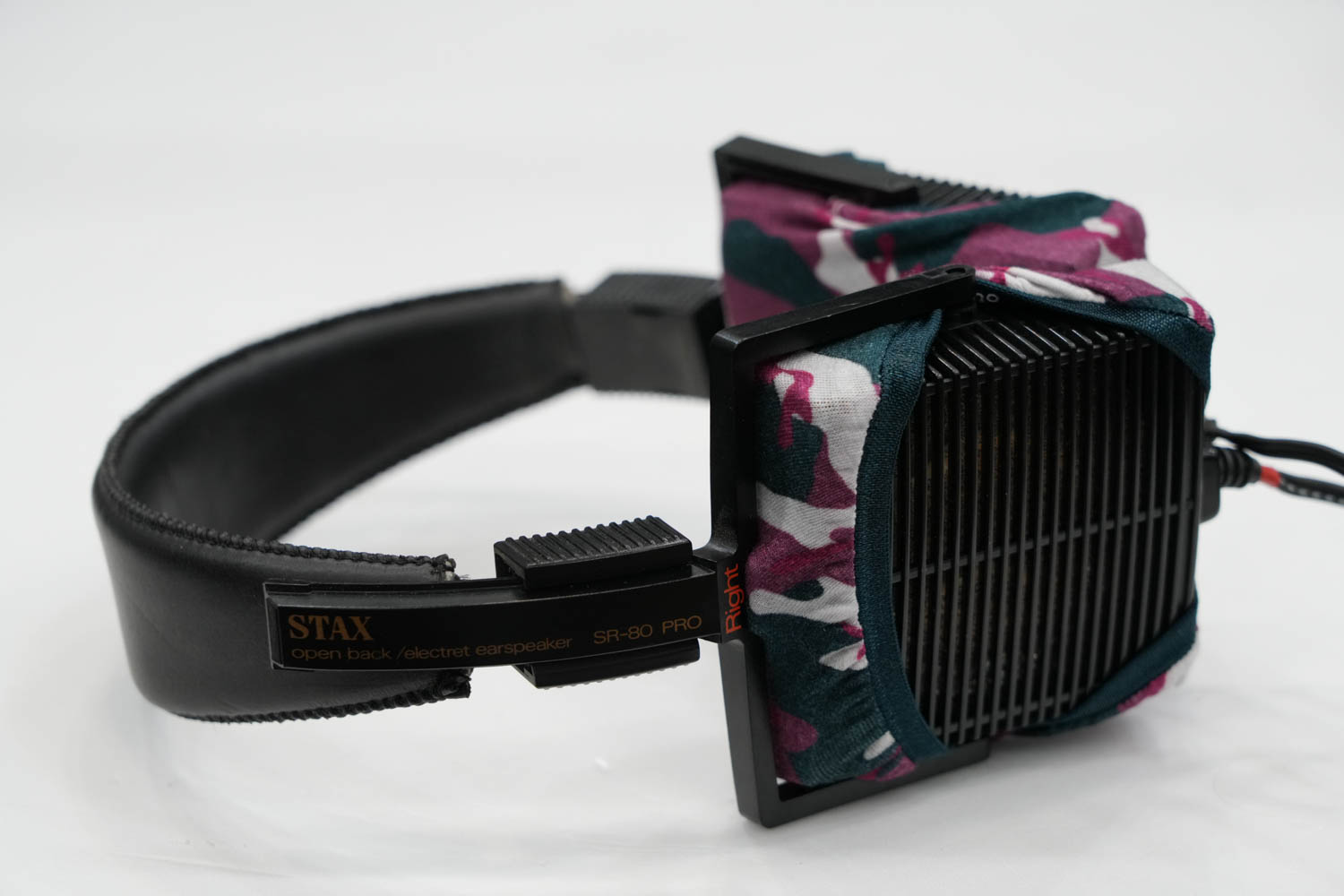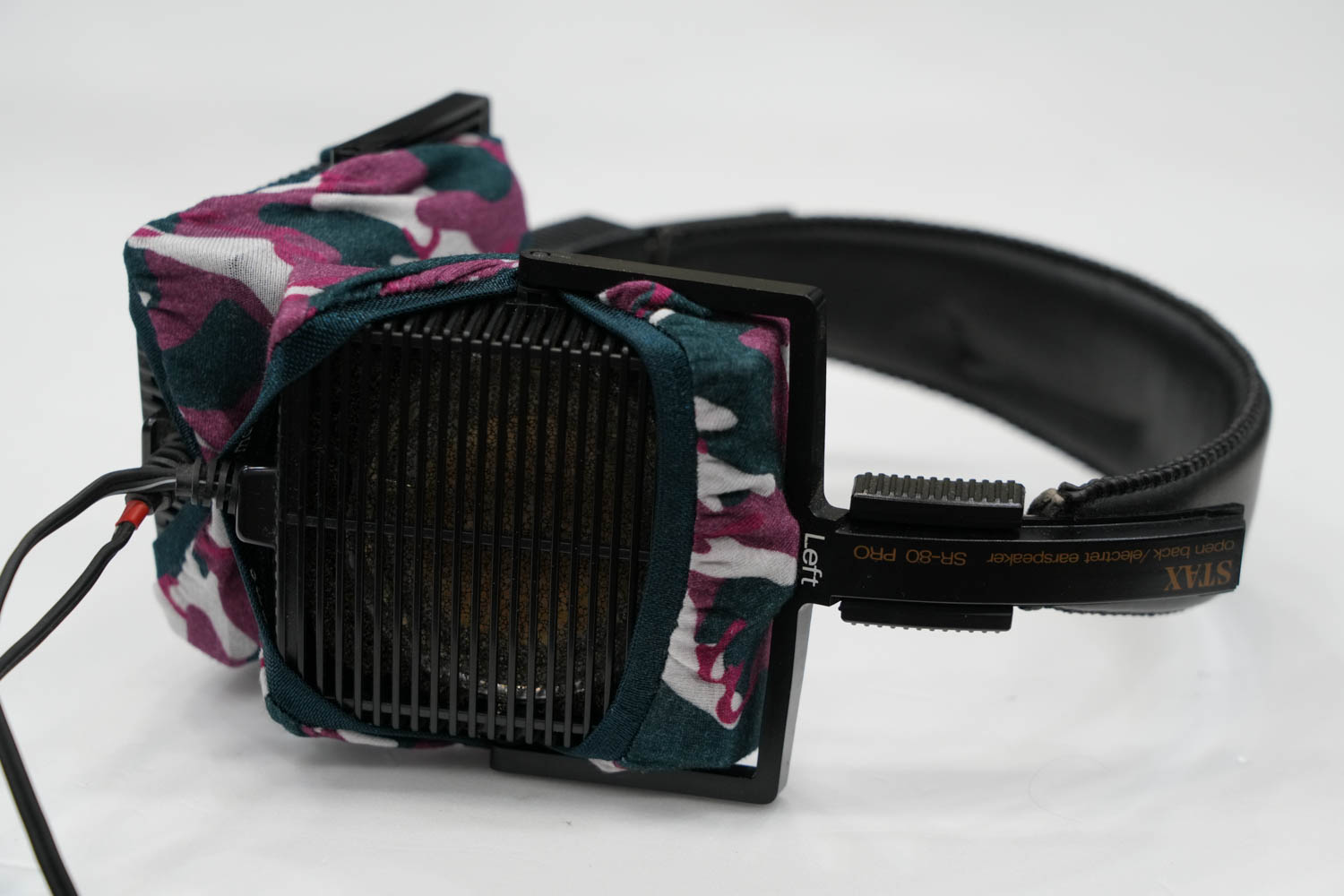 mimimamo를 부착했을 때의 착용감 STAX SR-80 PRO의 이어패드 수리 및 착용감 개선을 위해 mimimamo를 사용하는 경우 (※사진은 L 사이즈 착용 예시)