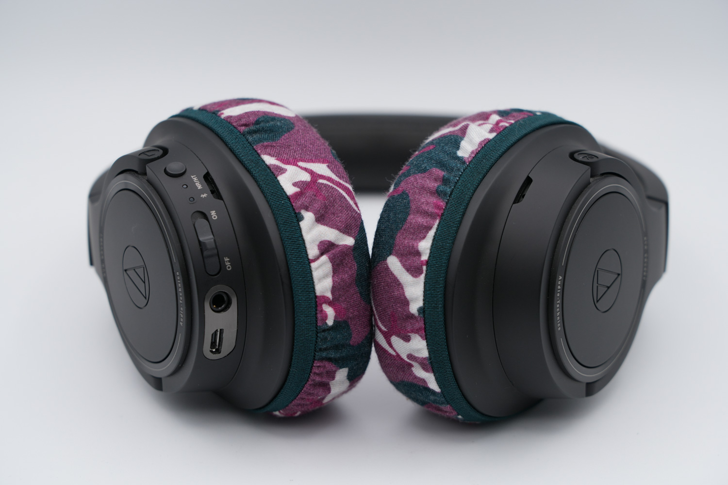 將mimimamo附加到audio-technica ATH-SR50BT,掛載示例等時的合身感覺。(*照片為L尺寸掛載示例)