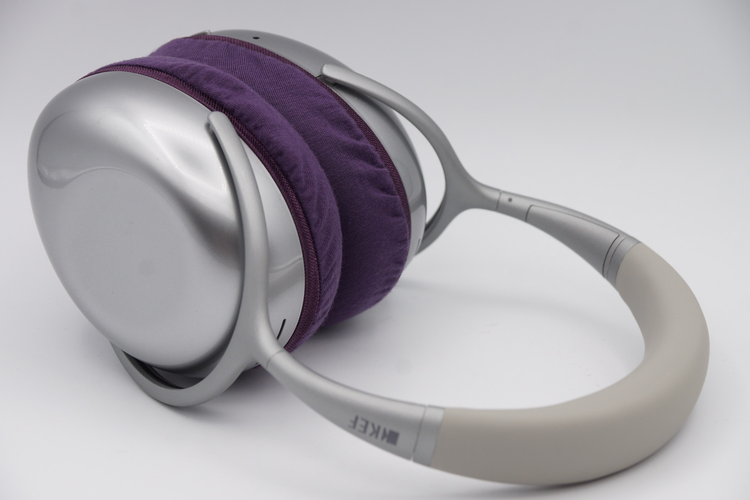將mimimamo附加到KEF Mu7,掛載示例等時的合身感覺。(*照片為L尺寸掛載示例)