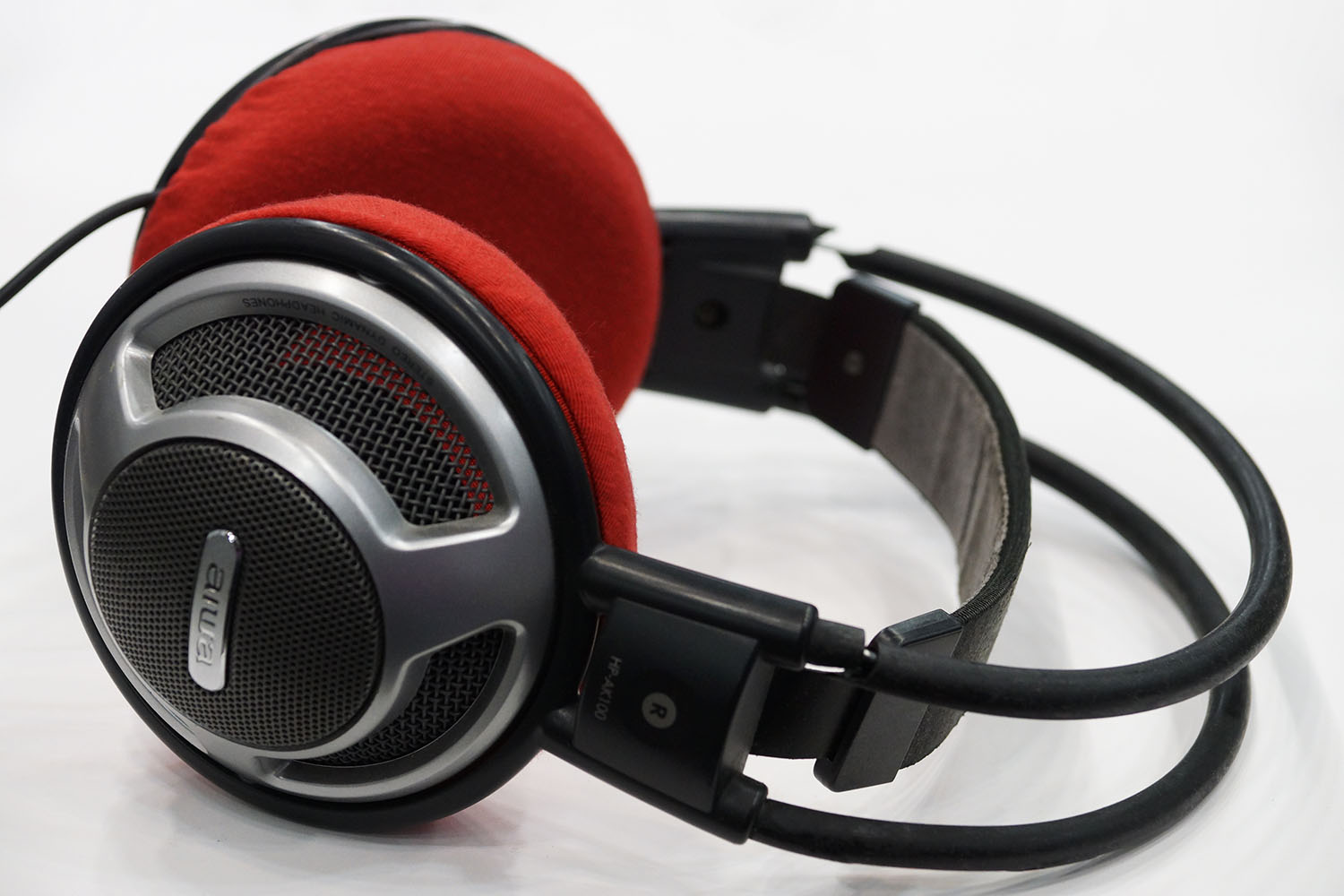 aiwa HP-AK100のイヤーパッドの修理や装着感の改善にmimimamoを使用する場合(※写真はLサイズの装着例 ※撮影協力:第20回ヘッドホン対応表ご協力キャンペーン参加者様)