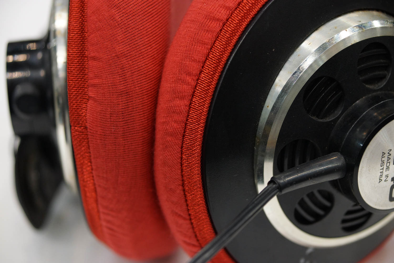 AKG K240 SEXTETTのイヤーパッドの修理や装着感の改善にmimimamoを使用する場合(※写真はLサイズの装着例)