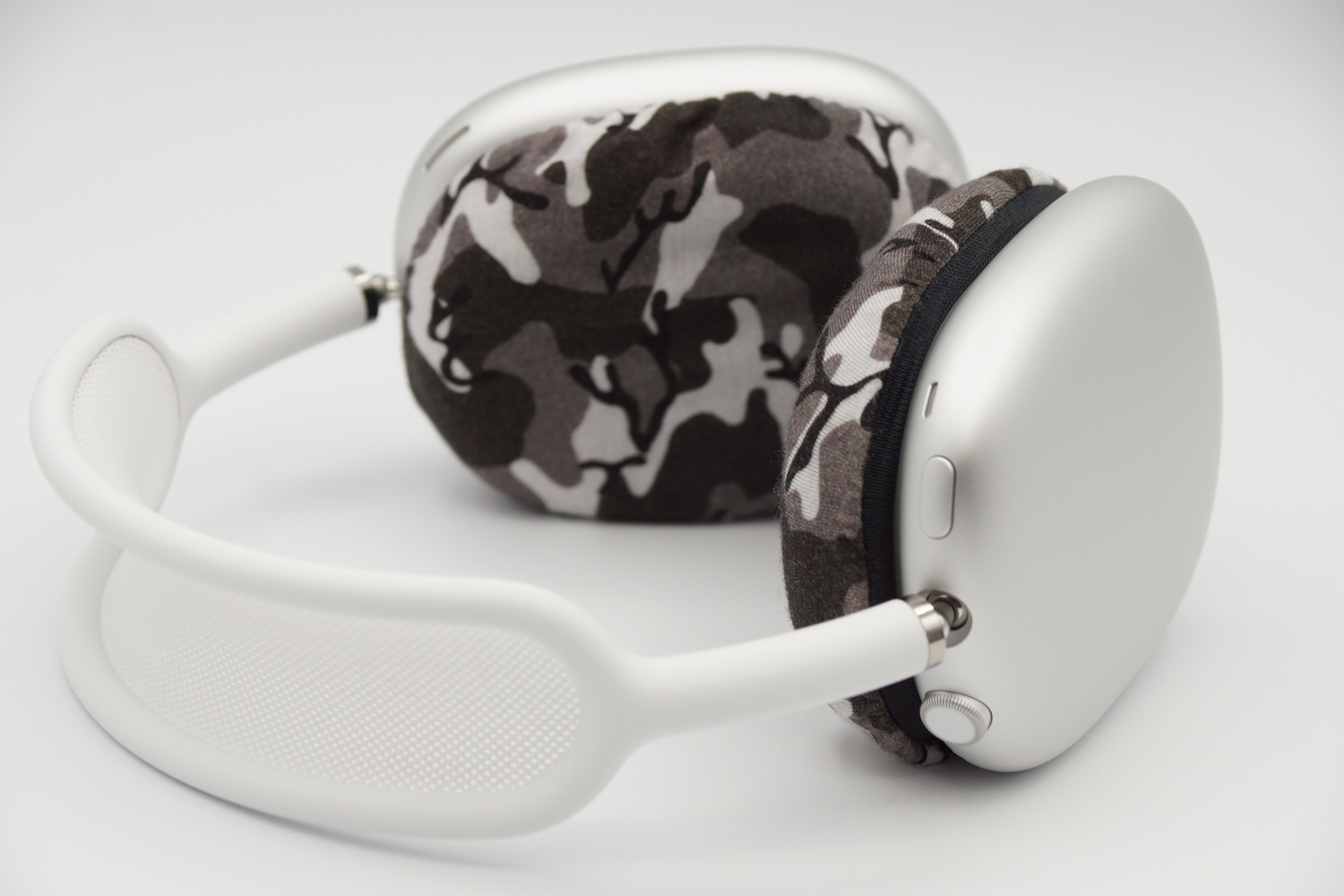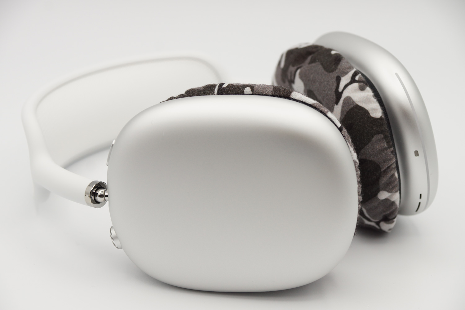 apple AirPods Maxのイヤーパッドの修理や装着感の改善にmimimamoを使用する場合(※写真はLサイズの装着例)