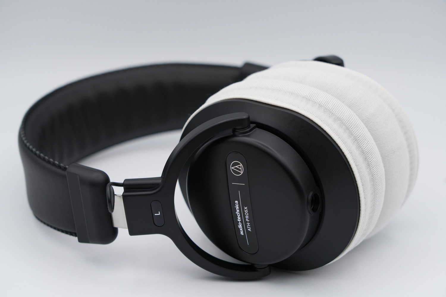 audio-technica ATH-PRO5Xのイヤーパッドの修理や装着感の改善にmimimamoを使用する場合(※写真はLサイズの装着例)