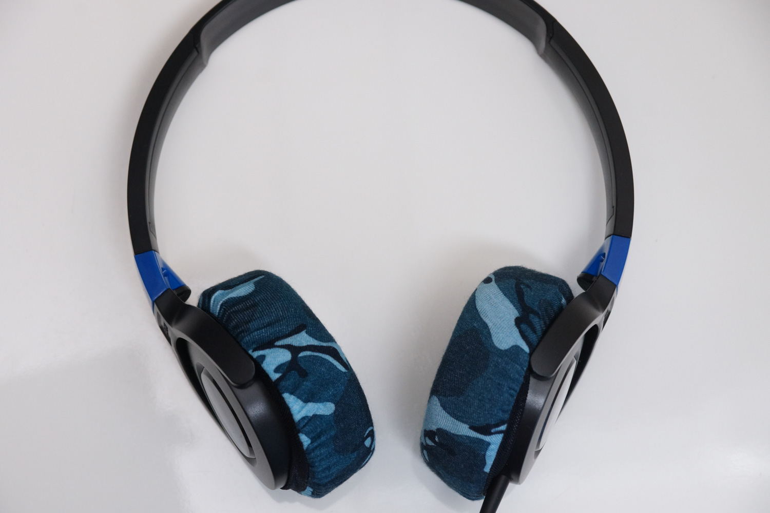 カバーのゴムバンドの部分がイヤーカップの段差とヘッドバンドのヒンジの部分の間に入るように被せるのがお勧めです。(※上の装着写真をご参照ください)