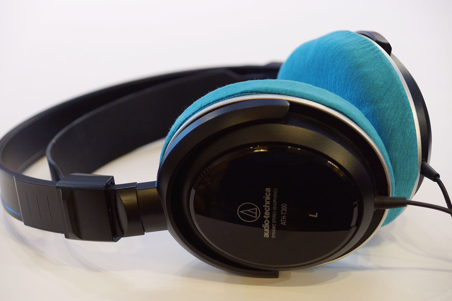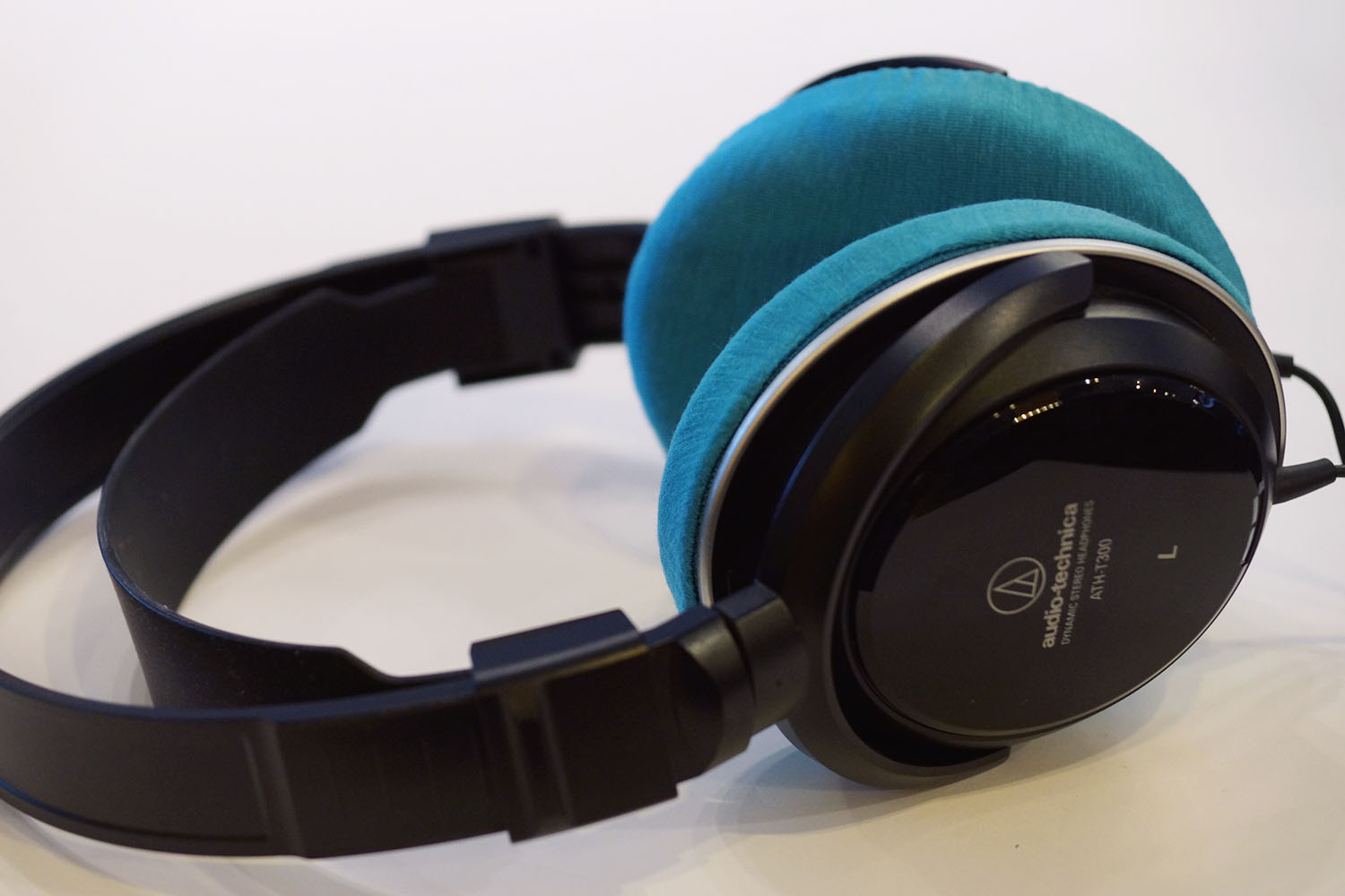 audio-technica ATH-T300のイヤーパッドの修理や装着感の改善にmimimamoを使用する場合(※写真はLサイズの装着例 ※撮影協力:第17回ヘッドホン対応表ご協力キャンペーン参加者様)