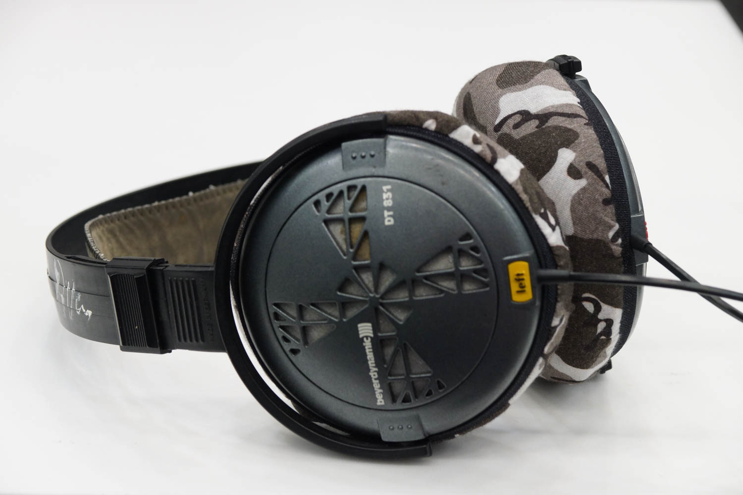 Beyerdynamic DT831のイヤーパッドの修理や装着感の改善にmimimamoを使用する場合(※写真はLサイズの装着例)