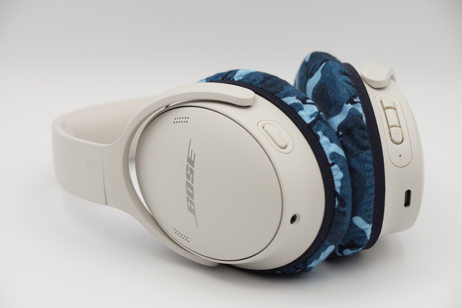 Bose QuietComfort 45のイヤーパッドの修理や装着感の改善にmimimamoを使用する場合(※写真はLサイズの装着例)