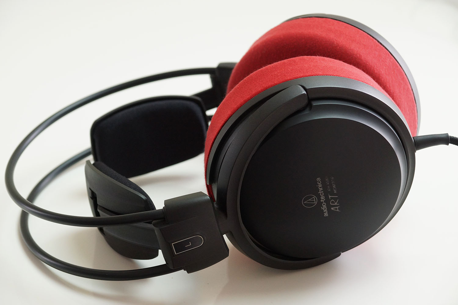将mimimamo附加到 audio-technica ATH-A500X,挂载示例等时的合身感觉。 (*照片为L尺寸挂载示例)