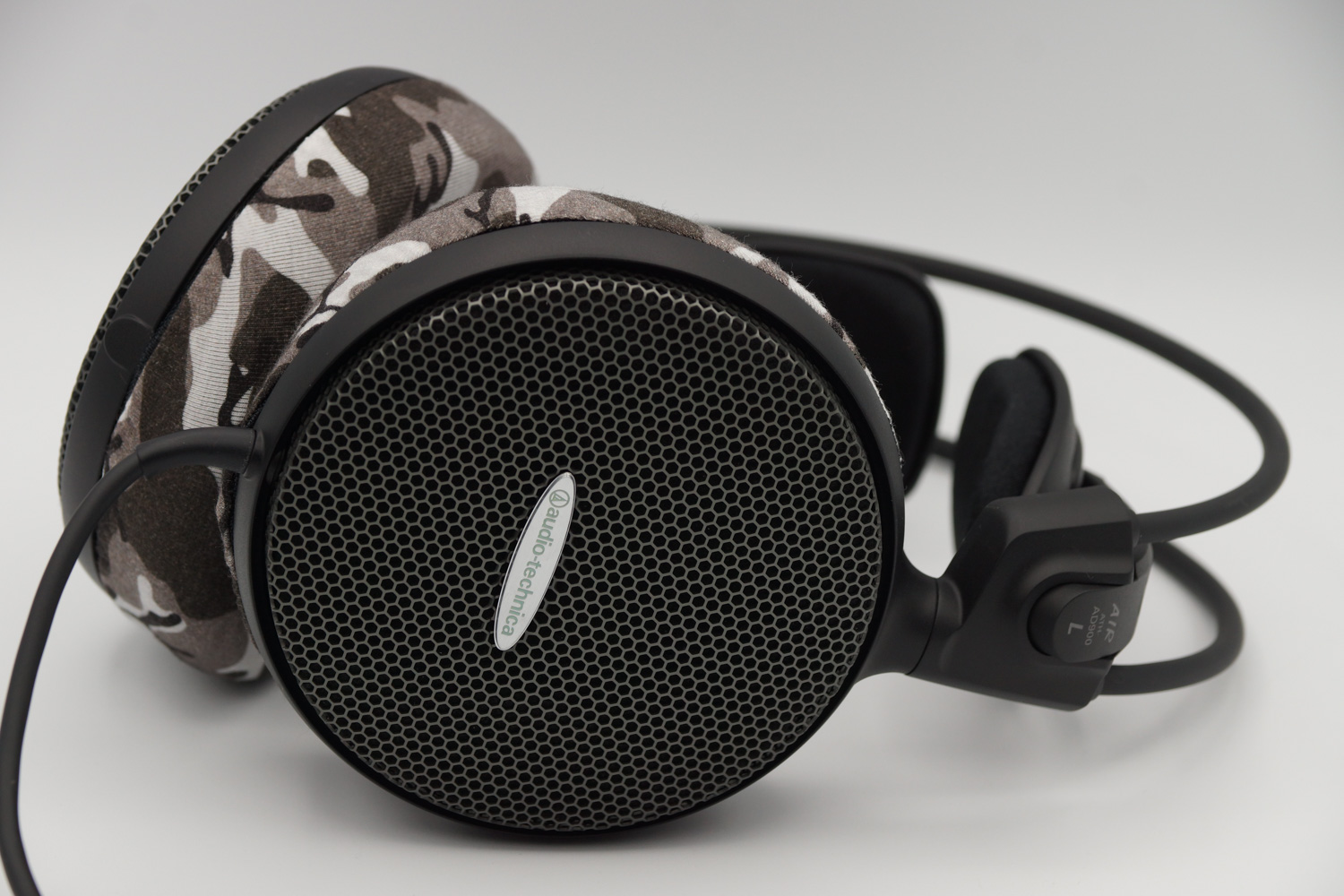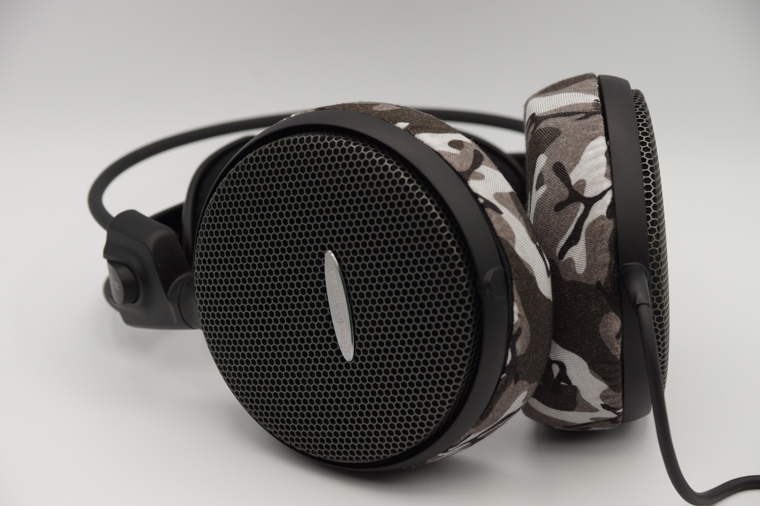 将mimimamo附加到 audio-technica ATH-AD900,挂载示例等时的合身感觉。 (*照片为L尺寸挂载示例)