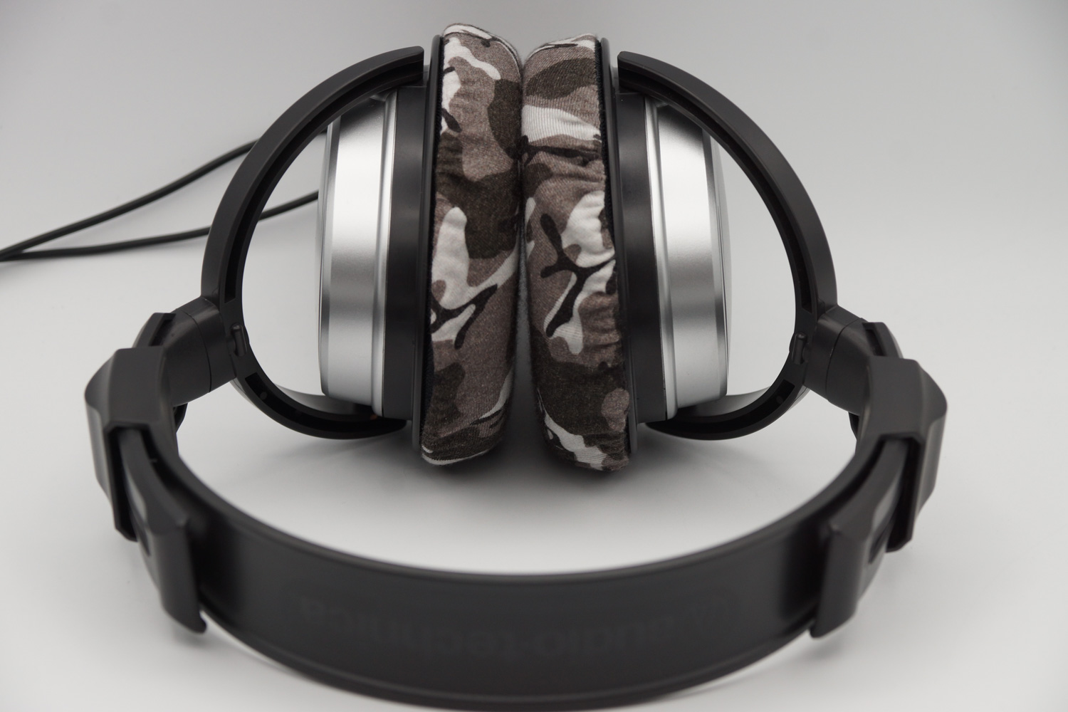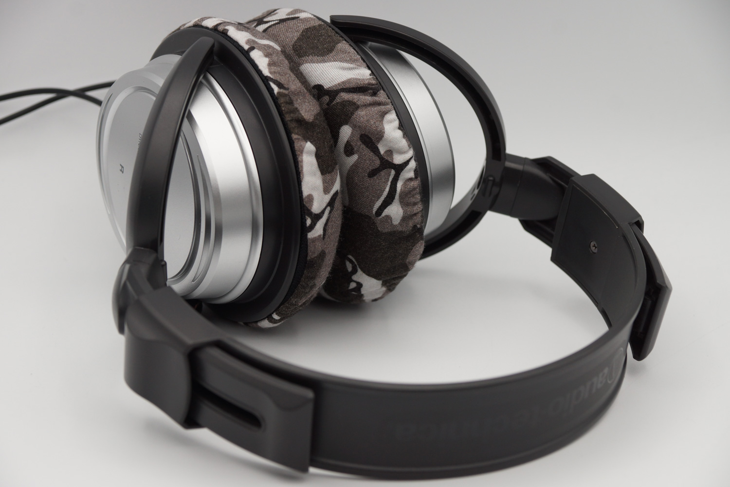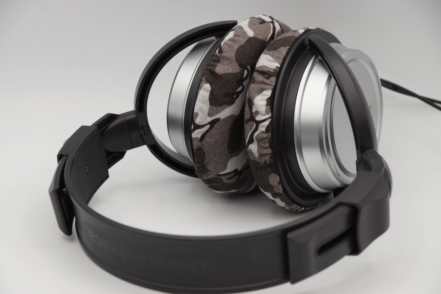 将mimimamo附加到 audio-technica ATH-T22,挂载示例等时的合身感觉。 (*照片为L尺寸挂载示例)