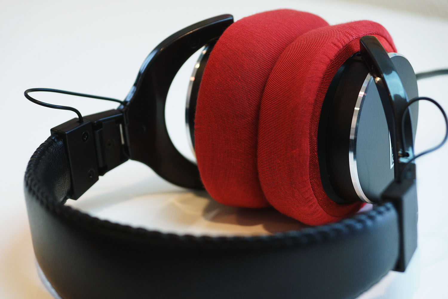 这个罩子在纵向和横向有不同的弹性,纵向更加可拉伸。由于这款耳机有细长的耳垫,所以将罩子设置为纵向(可以拉伸的方向)可以获得更好的贴合感。