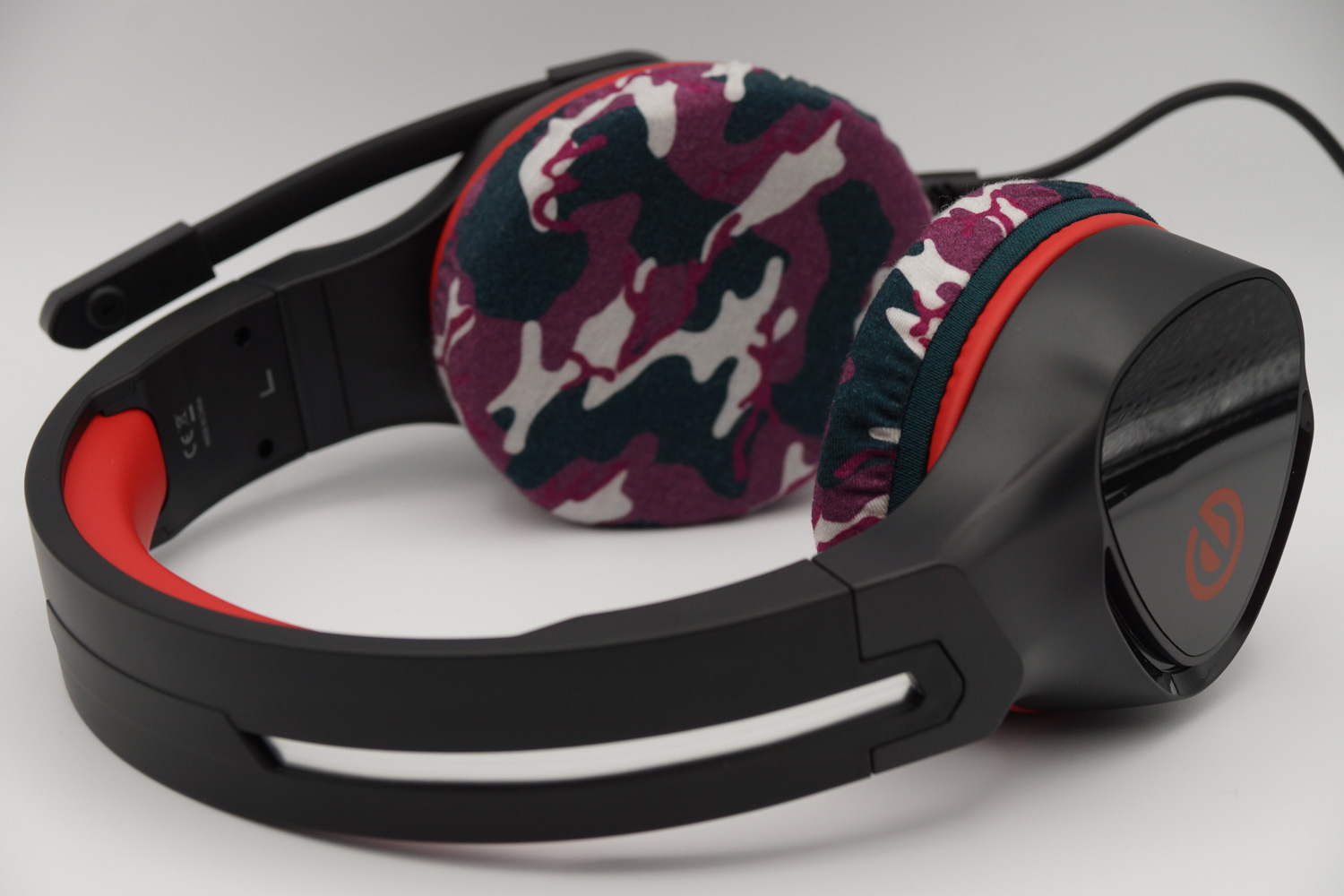 这个罩子在垂直和水平方向上的伸缩比例是不同的,垂直方向的伸展性更好。由于这款耳机的耳垫是垂直的,所以将罩子调整为垂直方向(伸展得更好的方向)将会增加佩戴的舒适度。要垂直放置罩子,请确保罩子上的橡胶带的接缝部分与杯子的上部(或下部)对齐。这样,您可以使罩子垂直放置。