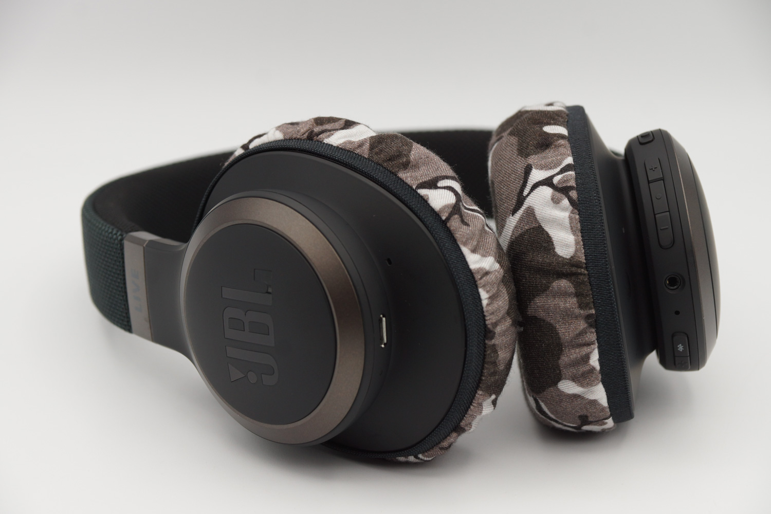 将mimimamo附加到 JBL LIVE650BTNC,挂载示例等时的合身感觉。 (*照片为L尺寸挂载示例)