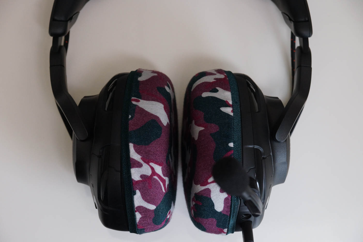 这个罩子在纵向和横向的伸展率是不同的,纵向伸展性更好。由于这款耳机的耳垫是纵向的,所以竖直对齐罩子(伸展性好的方向)会提高舒适度。为了竖直装配,确保罩子的橡胶带上的接缝位于耳杯的上部或下部。
