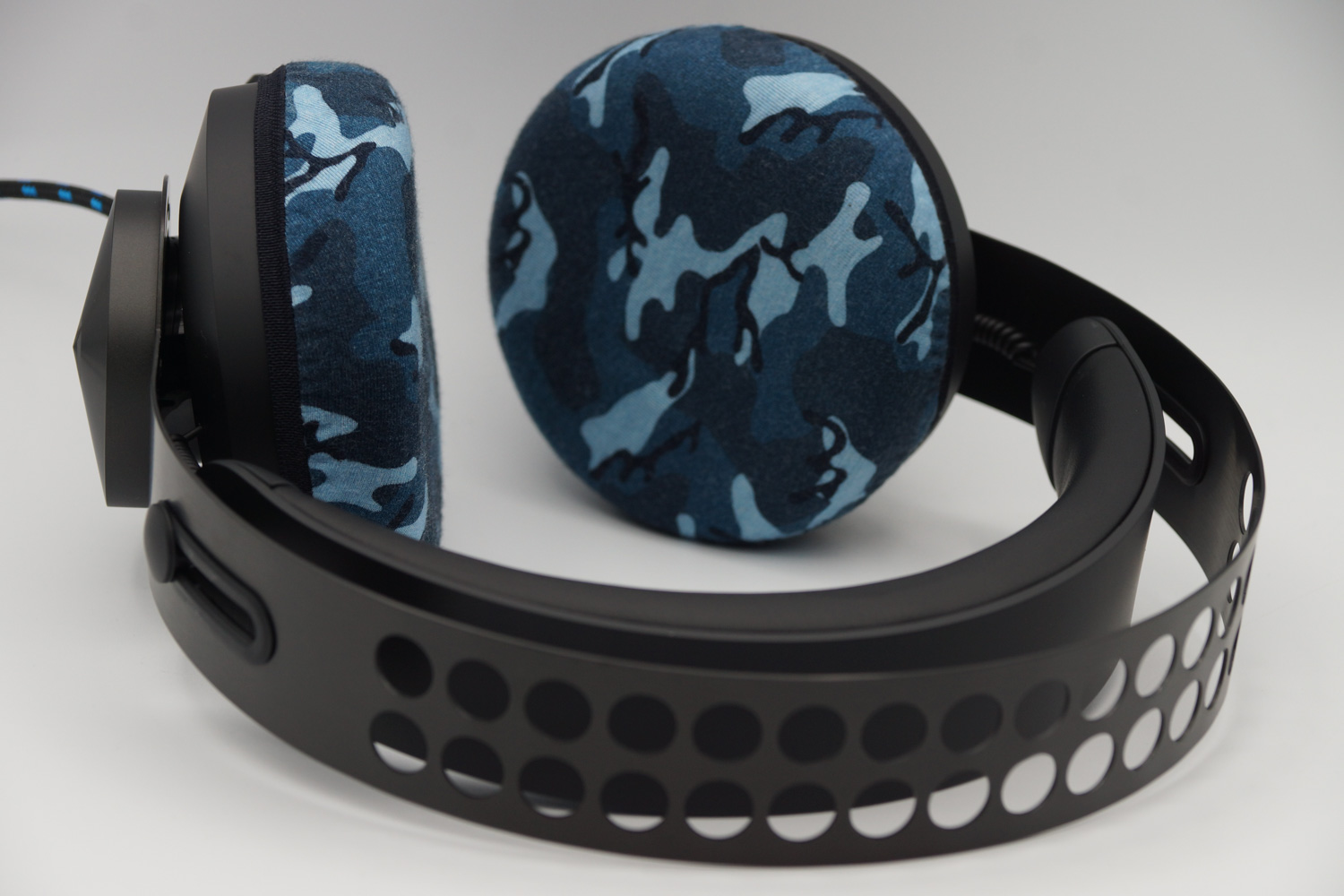 这个罩子在纵向和横向有不同的伸展率,纵向伸展得更好。由于这款耳机的内部耳垫是纵向延长的,最好将罩子纵向对齐并安装,以提高佩戴感。