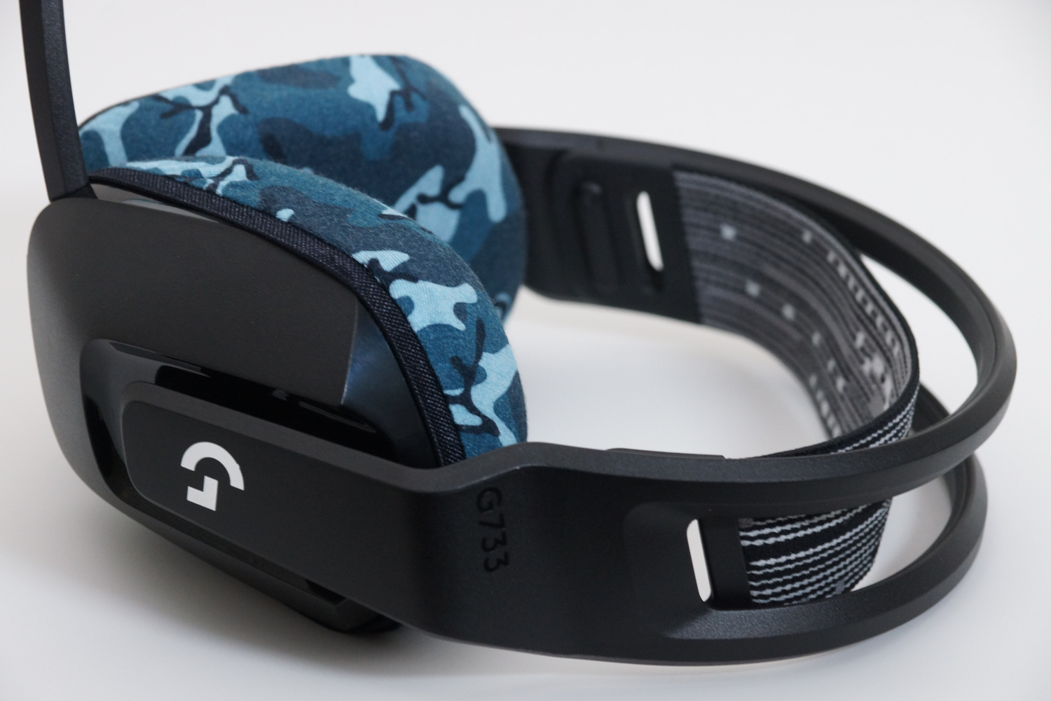 将mimimamo附加到 Logicool G733,挂载示例等时的合身感觉。 (*照片为L尺寸挂载示例)