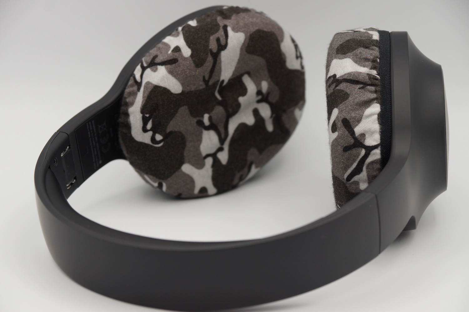 为这款耳机加盖时,建议只覆盖耳垫部分,不覆盖外壳部分。(请参考上面的图片)