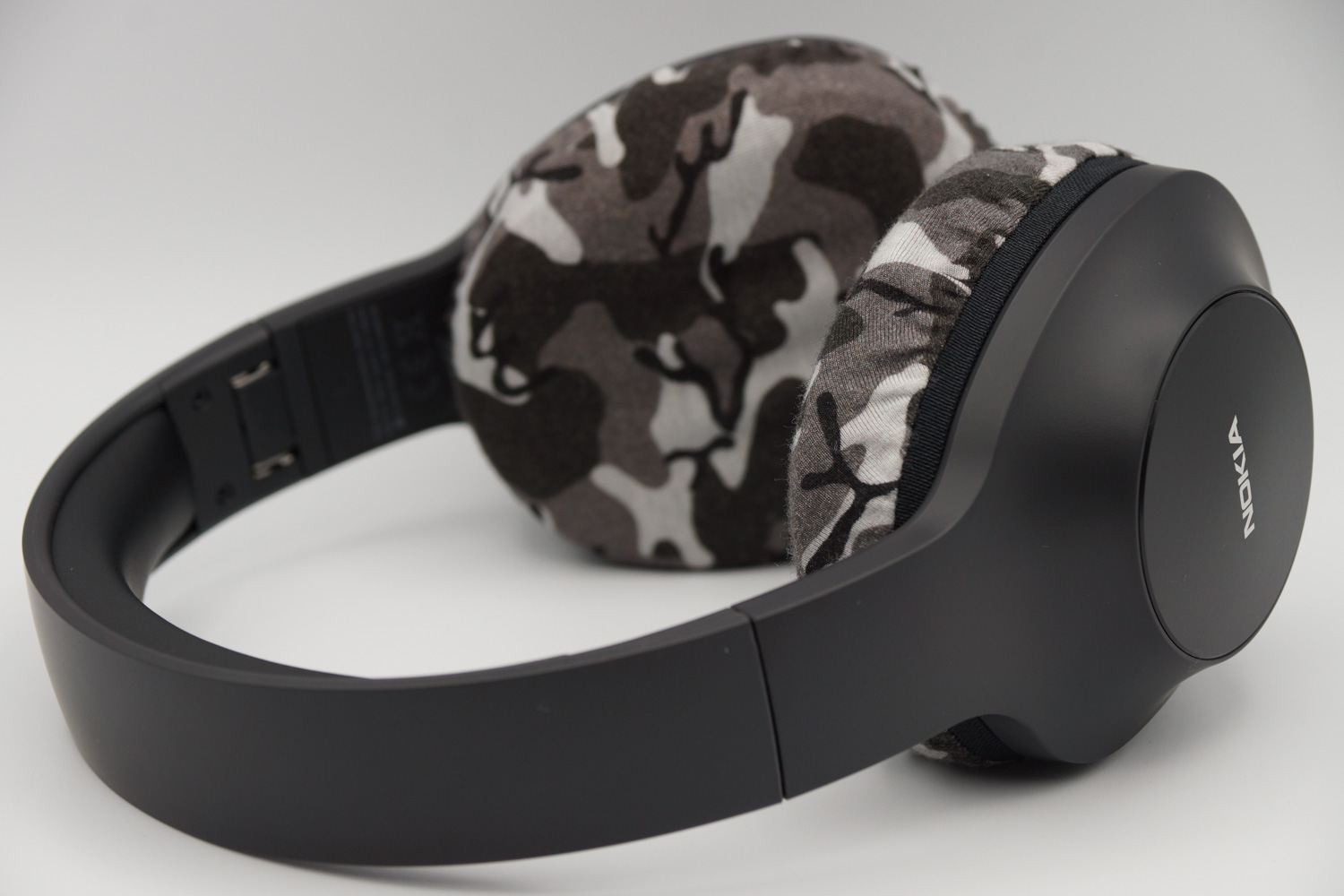 此覆盖物在纵向和横向的伸缩率上有所不同,纵向的弹性更好。由于这款耳机的耳垫是纵长的,所以将覆盖物竖直对齐(伸展性好的方向)会使佩戴感更佳。