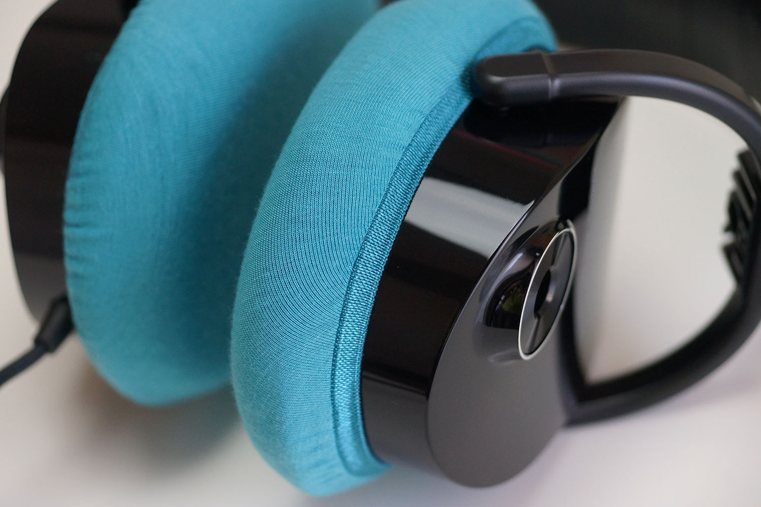 此盖子在纵向和横向的伸展率不同,纵向的伸展性更好。由于这款耳机的耳垫是纵向拉长的,所以将盖子纵向对齐(伸展良好的方向)会提高佩戴感。
