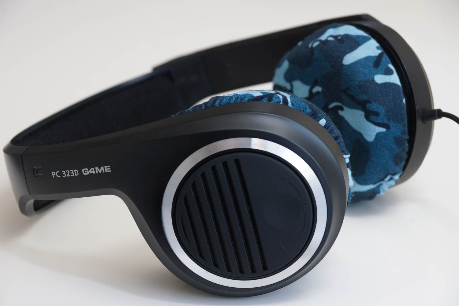 将mimimamo附加到 SENNHEISER PC 323D,挂载示例等时的合身感觉。 (*照片为L尺寸挂载示例)