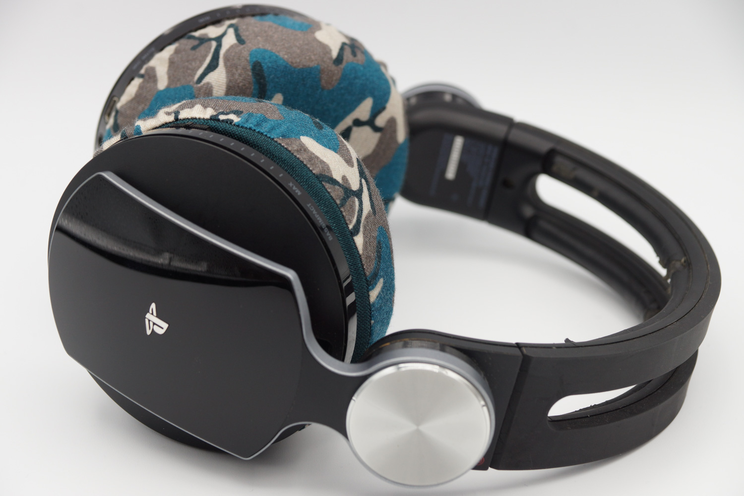 将mimimamo附加到 SONY CECHYA-0086 (Pulse Elite Edition Wireless Headset),挂载示例等时的合身感觉。 (*照片为L尺寸挂载示例)