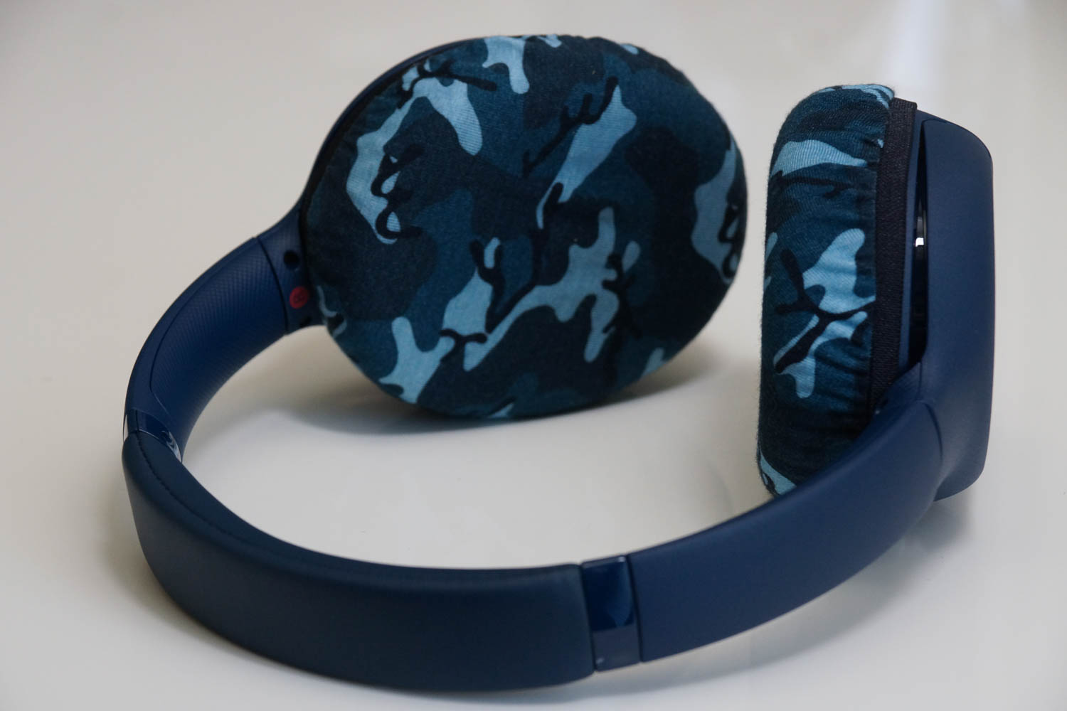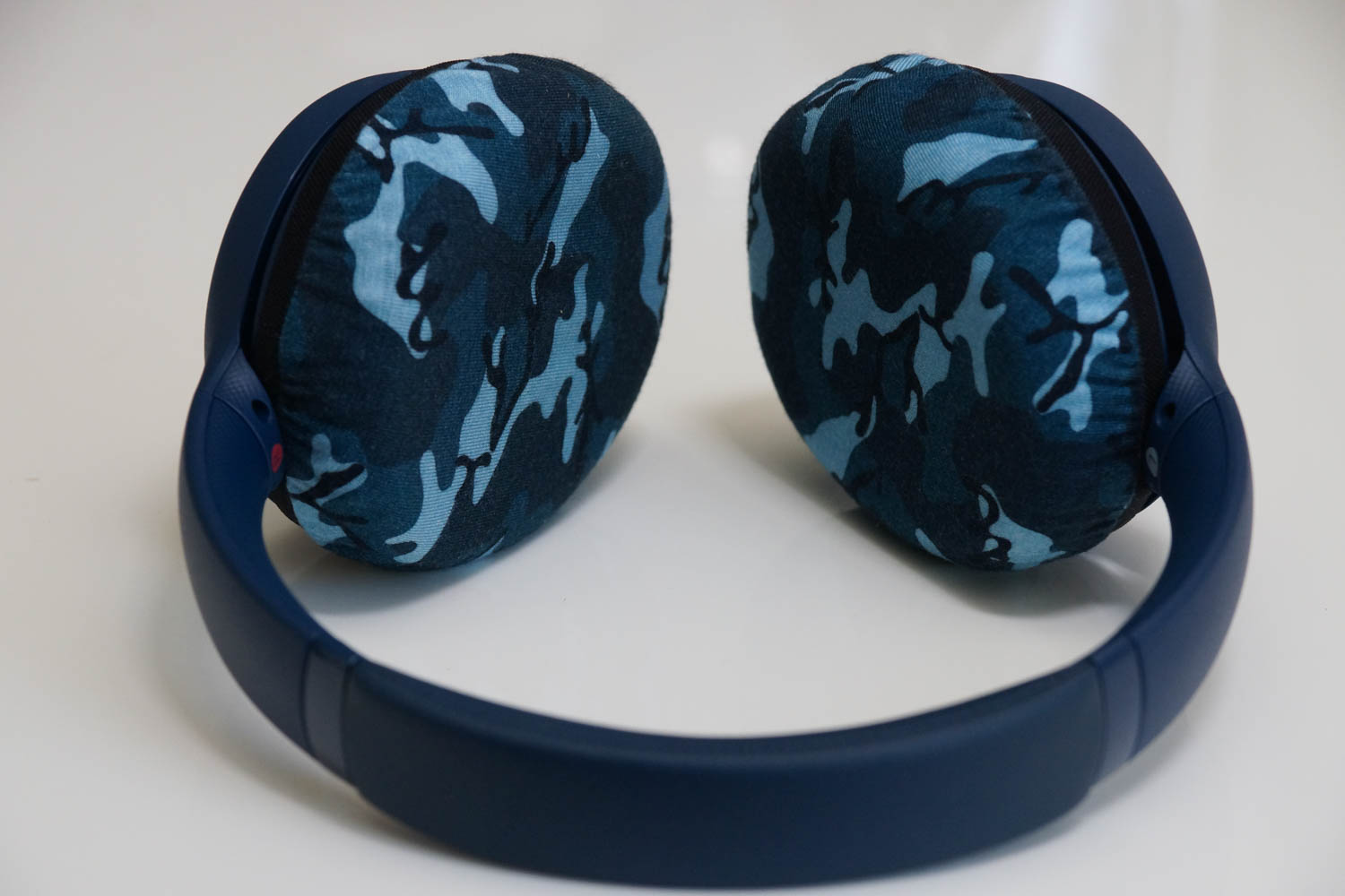 此罩子在纵向和横向的弹性有所不同,纵向更具伸缩性。因为这款耳机的耳垫是纵向拉长的,所以建议将罩子纵向对齐,这样佩戴感会更好。在垂直装配罩子时,将罩子的橡皮带的接缝位置在罩杯的上部(或下部),这样可以确保罩子垂直放置。