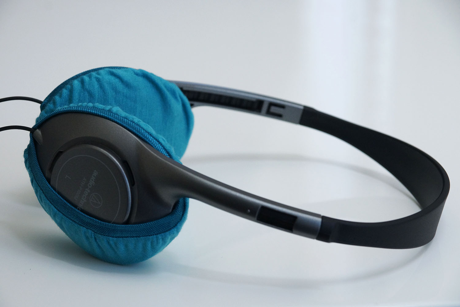 Fit feeling when mimimamo is attached to audio-technica ATH-P100M, installation example, etc. (* The photo is an M size installation example)