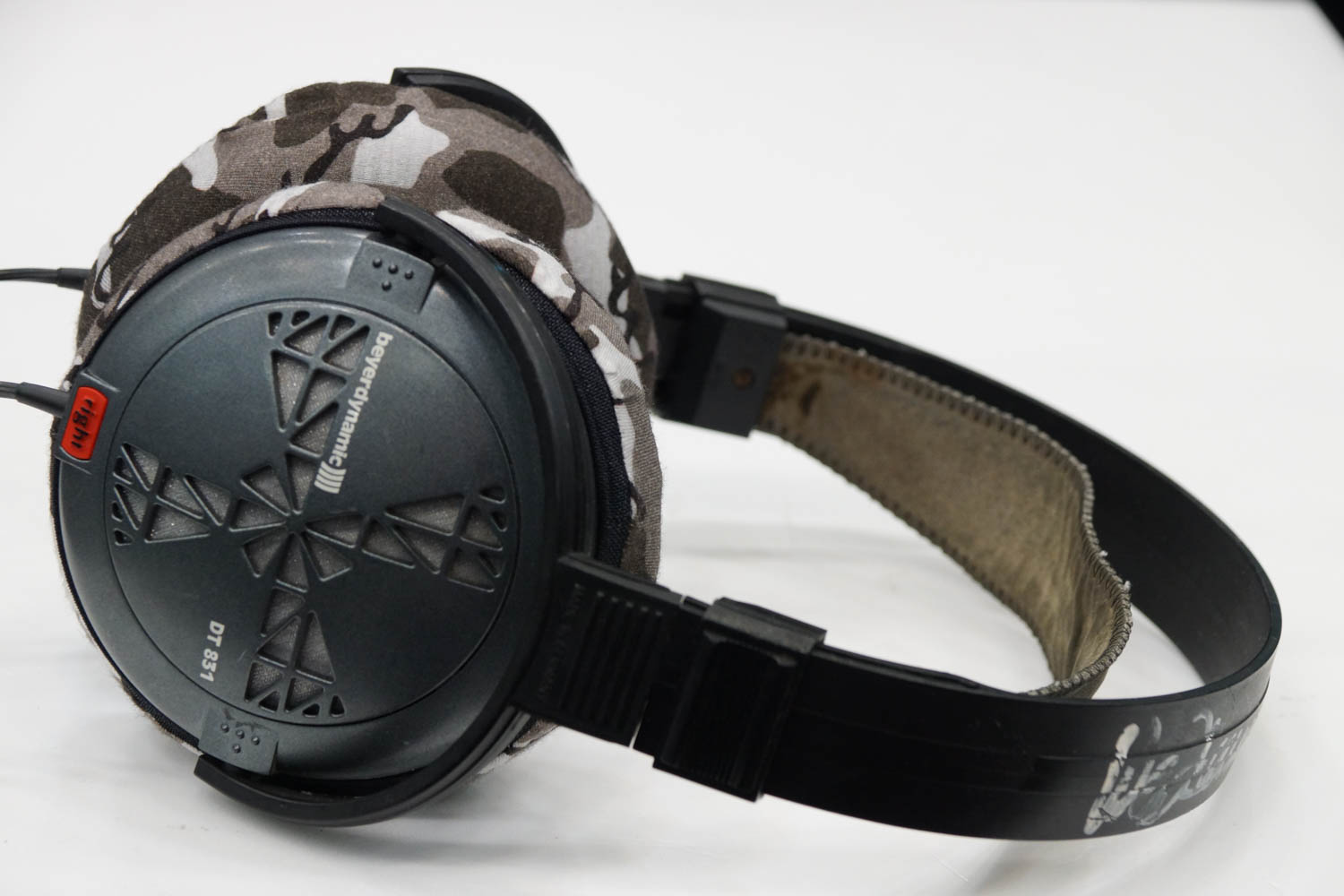 Fit feeling when mimimamo is attached to Beyerdynamic DT831, installation example, etc. (* The photo is an L size installation example)
