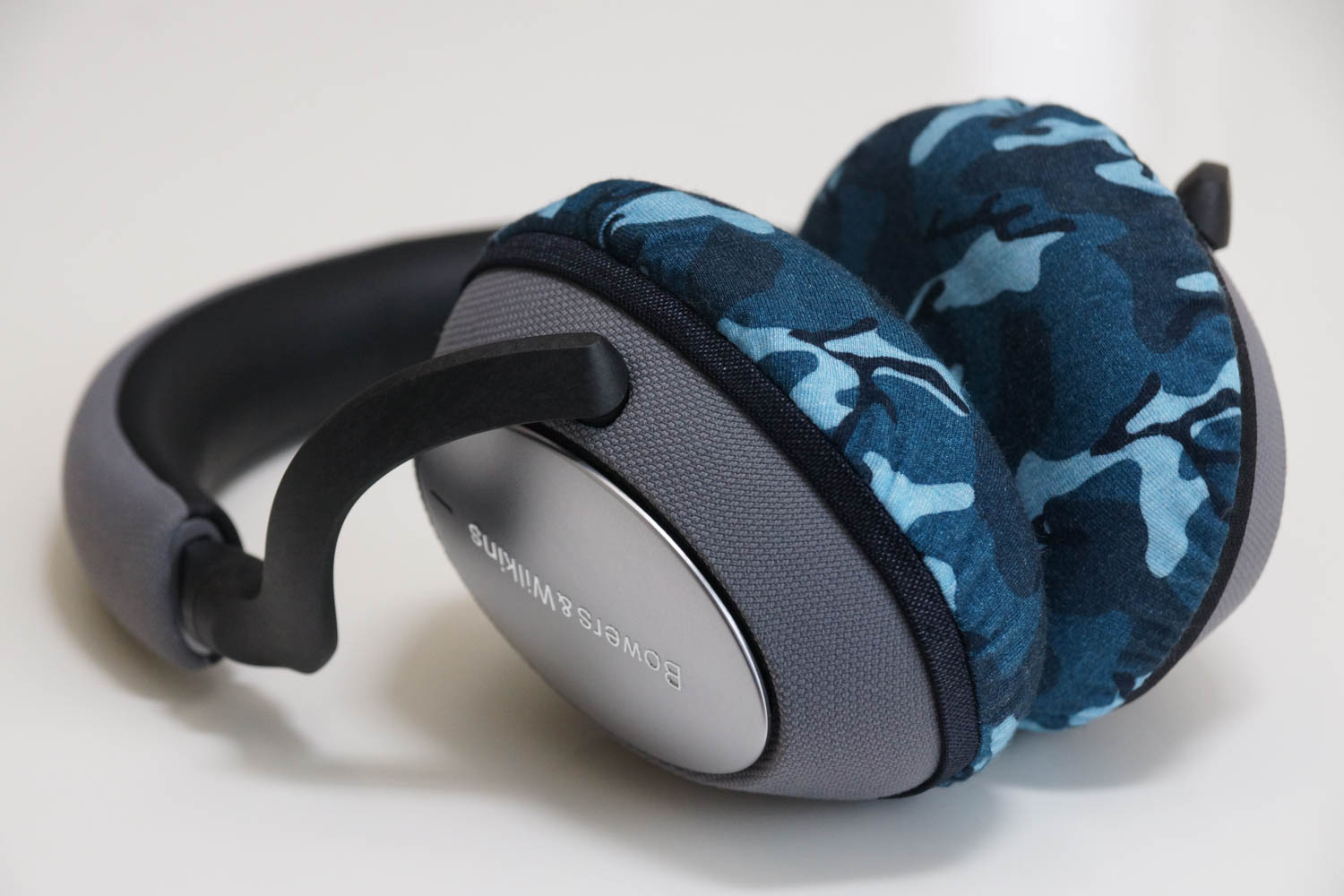 This headphone is a wireless headphone from the brand "Bowers&Wilkins" known for its high-end audio. While being simple, it has a unique design, with both the headband and ear cups wrapped in fabric on the outside and synthetic leather on the inside. The ear cups are adorned with a metal plate with an elegant embossed design. Its unique design, combined with an elegant and refined appearance, is its charm.