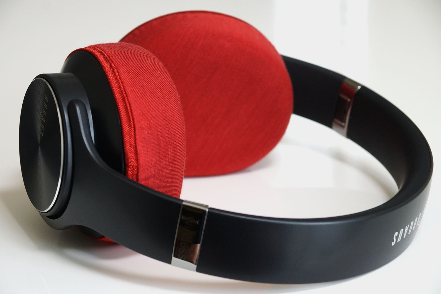 The recommended depth for covering is such that the rubber band of the cover aligns with the very tip of the ear cup housing (right next to the ear pad). (Please refer to the wearing photo above.)