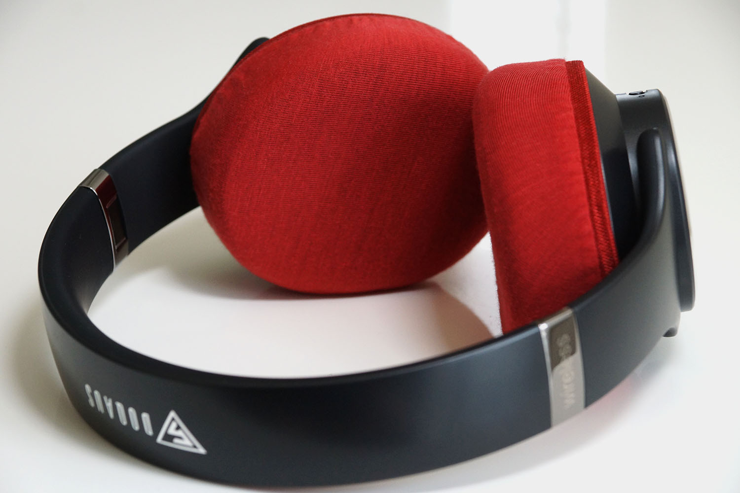 After attaching the cover, before wearing the headphones, press the cover into the inside of the ear pad to stretch the fabric. This will reduce the tension of the cover, improving the fit. If you feel discomfort in your ears when using the cover, please try this method.