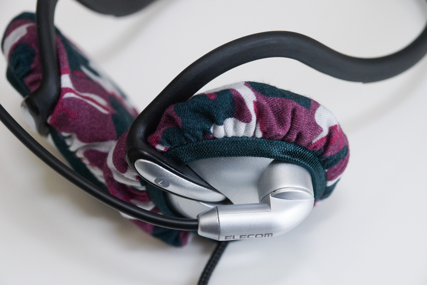 Since the cover is larger than the ear pads, it can be loose and fall off easily, so please be cautious. To prevent the cover from falling off, it is recommended to fit it in such a way that the rubber band part of the cover is sandwiched between the ear pad and the neckband. (Please refer to the picture above)