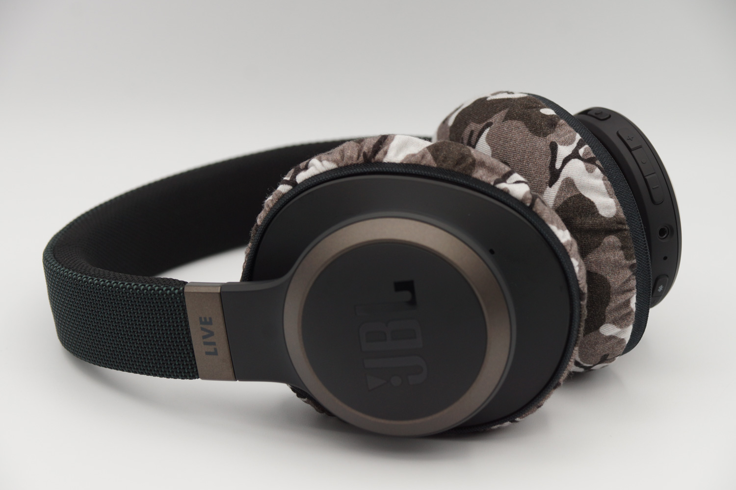 Fit feeling when mimimamo is attached to JBL LIVE650BTNC, installation example, etc. (* The photo is an L size installation example)