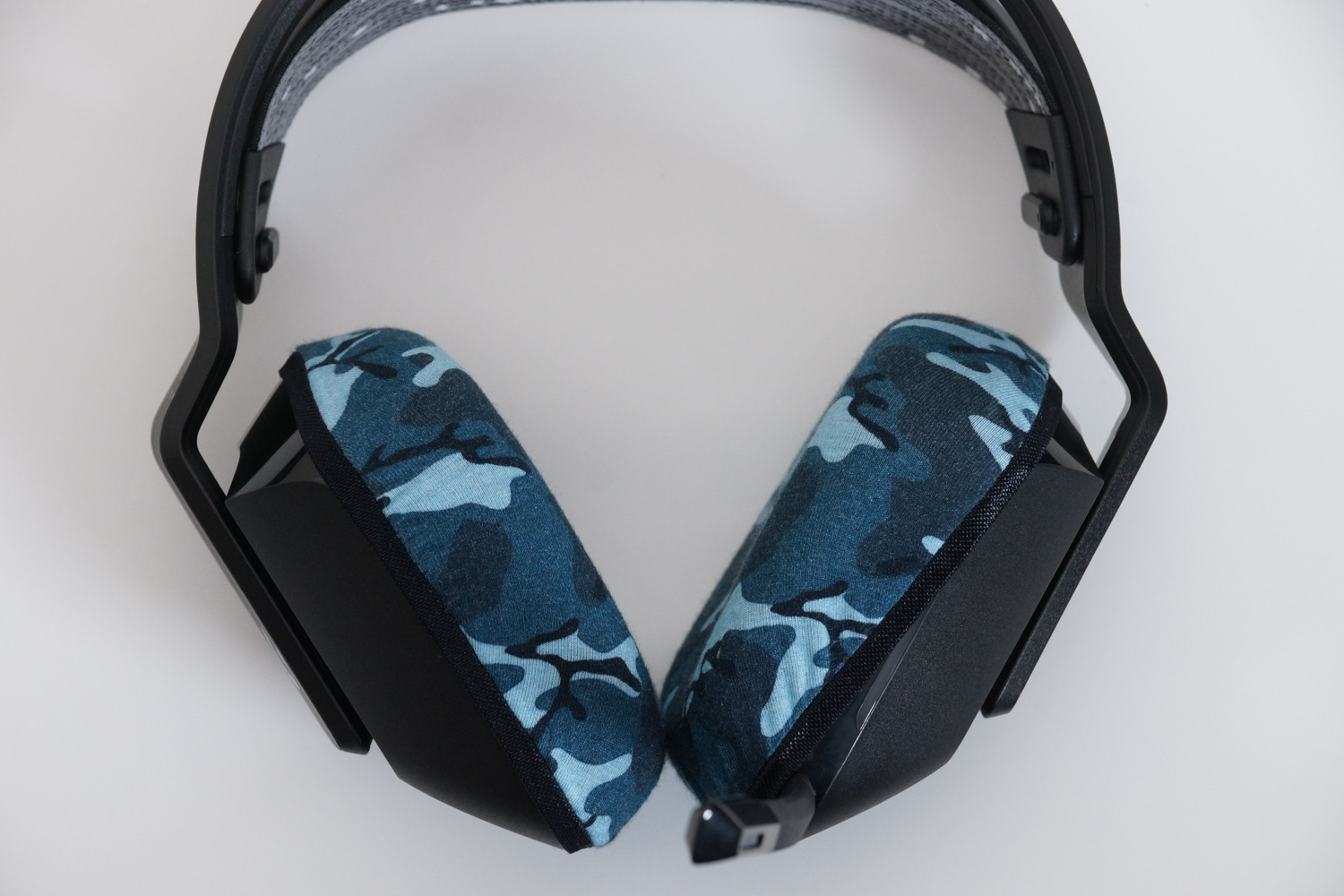 This headset is a wireless gaming headset from "Logicool", known for producing a wide range of gaming devices. Its cool and mature design is eye-catching. Notably, for a gaming headset in this class, it's lightweight and boasts features like a rubber band headband that fits the user's head shape, and breathable fabric ear pads, making it a model that stands out for its comfort.