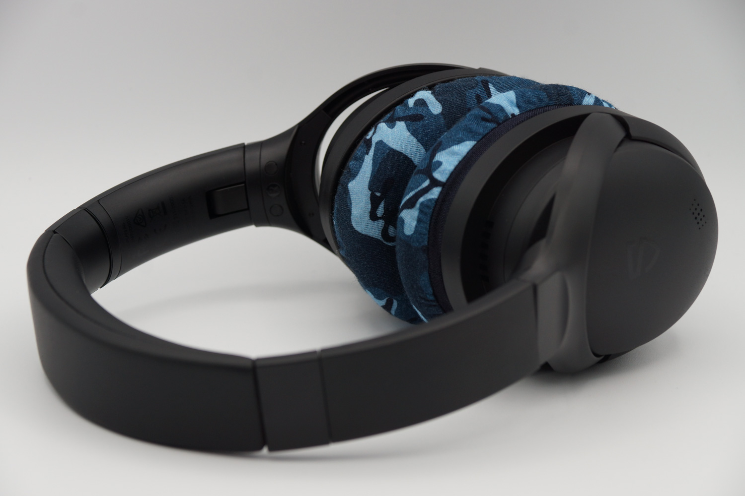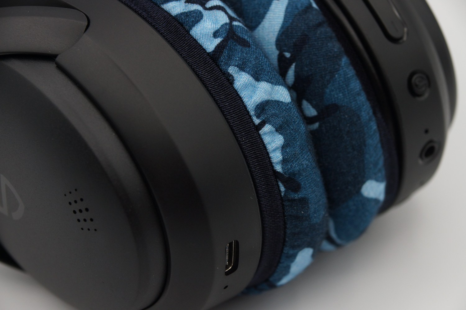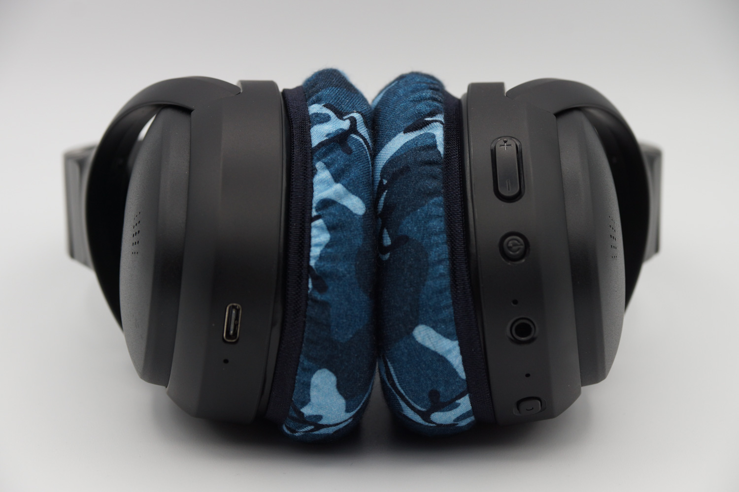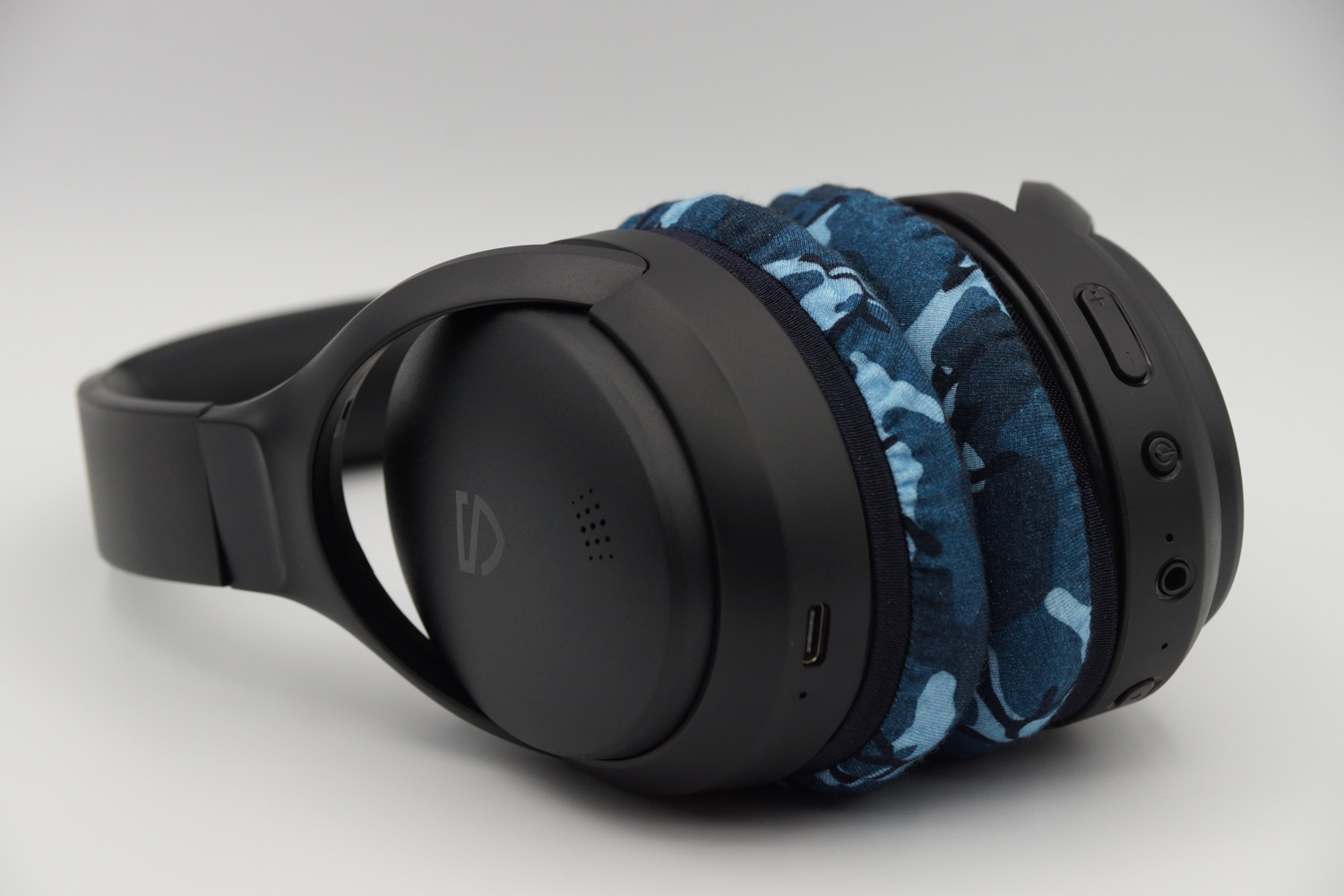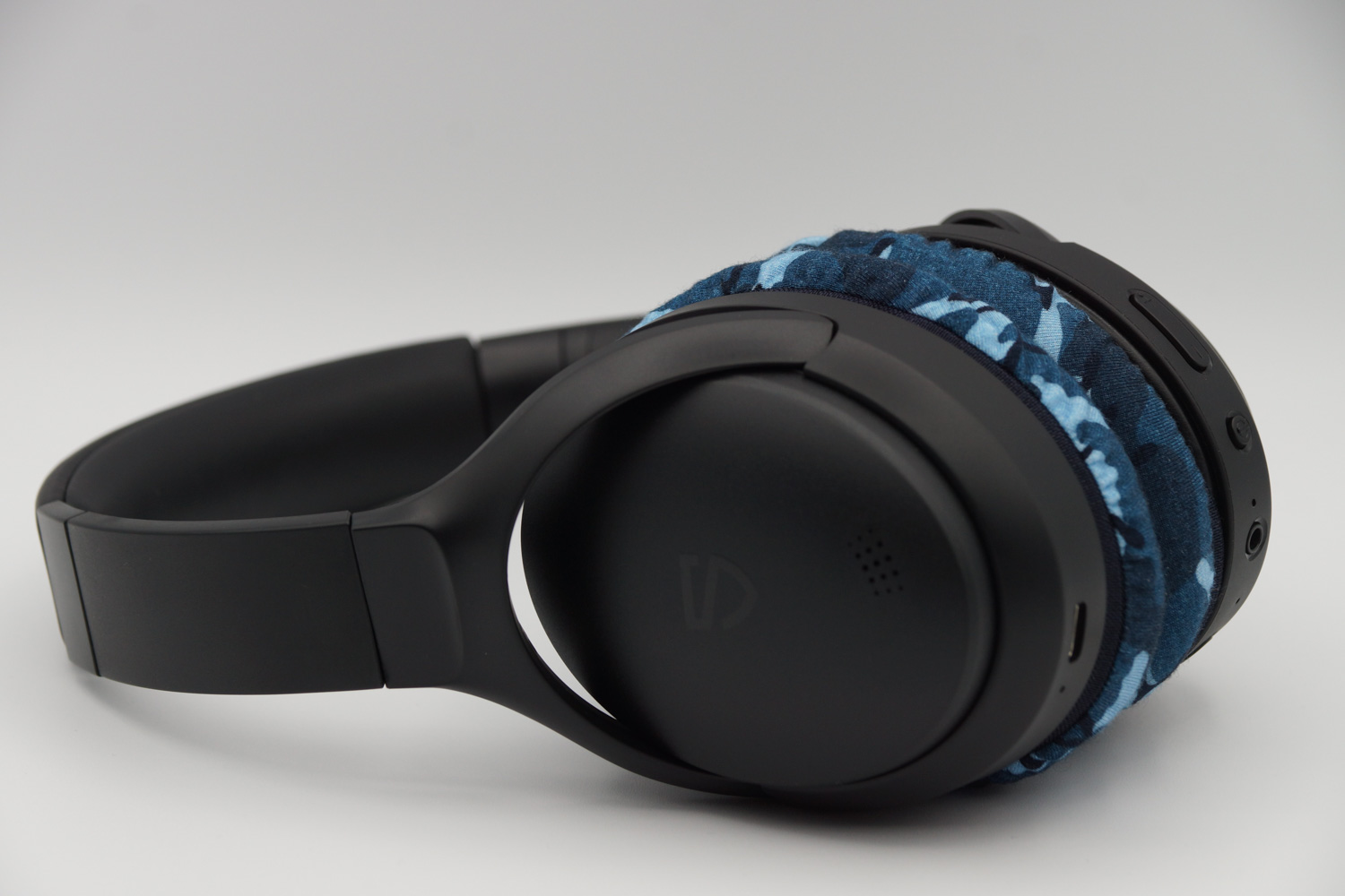 This headphone is a popular wireless headphone from the "Soundpeats" brand, known for its high cost-performance. Despite its reasonable price, it comes equipped with an active noise-cancelling feature, and the overall design gives an impression of being well-thought-out. Buttons and charging ports are conveniently placed, and there's a thoughtful detail where numbers are engraved on the headband slider to indicate the extended length. Among wireless headphones in this class, a distinctive feature is its relatively large and thick ear pads, which have a soft outer skin and cushion that gently envelops the ears.