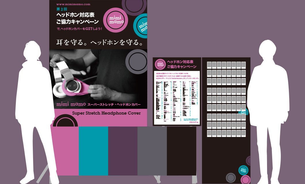 対応表に記載されていないヘッドホンをお持ちいただいて、対応を確認させてくださった方に機種ごとに先着1名様に限り、お好きなカラー・サイズの「mimimamo」を1つプレゼント致します。