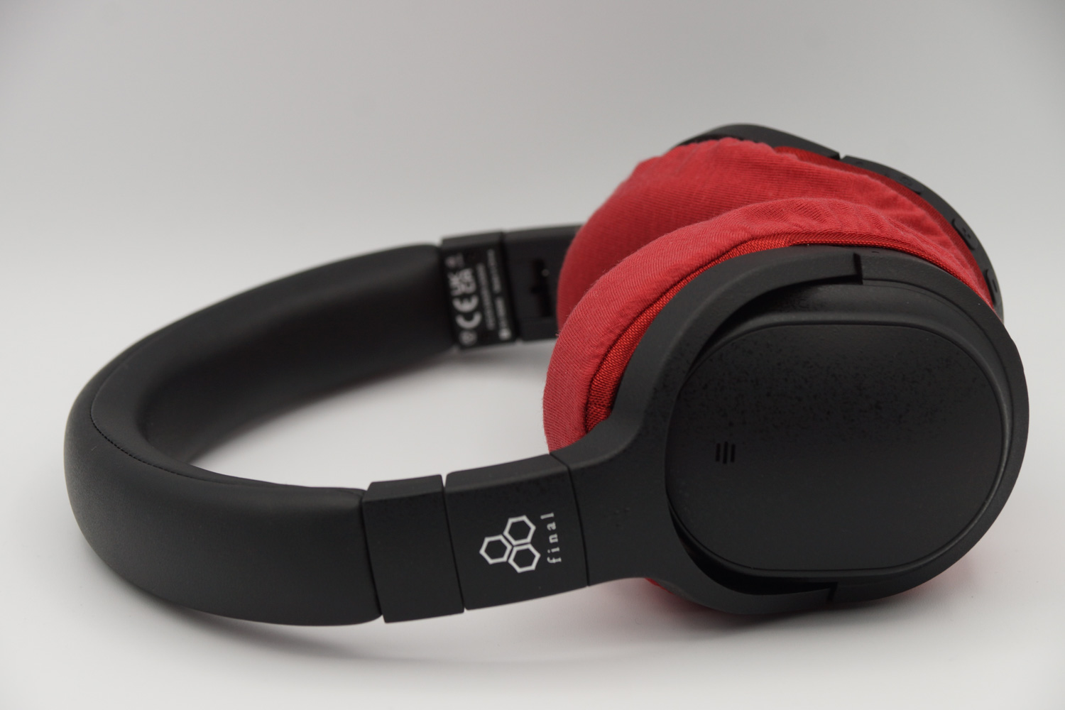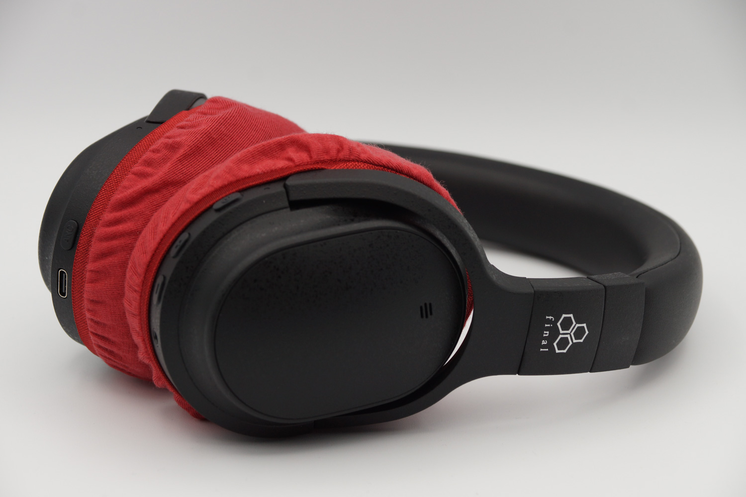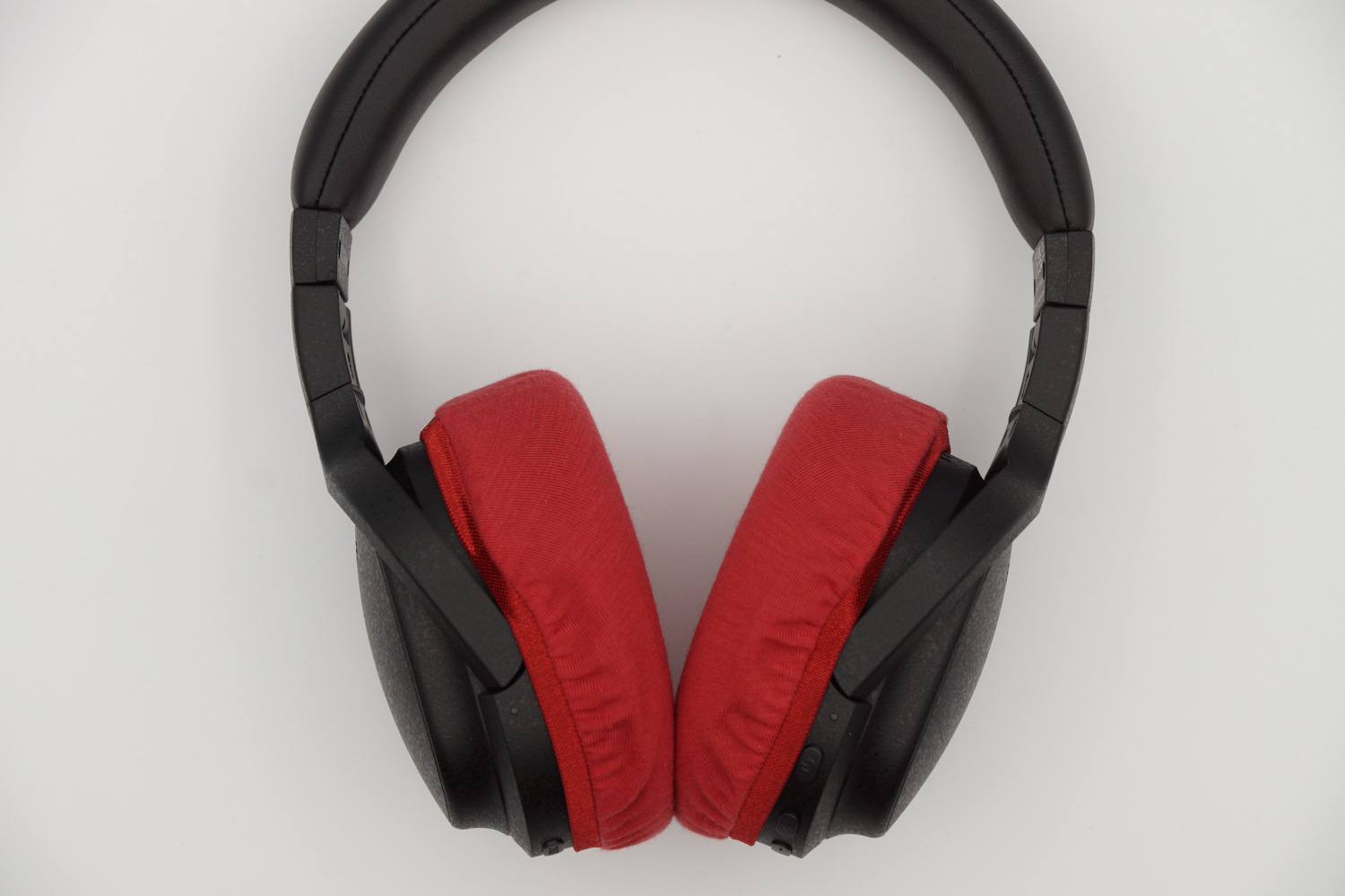 イヤーカップの上半分は、ヘッドバンドとの接続部のヒンジの部分とイヤーカップの間の段差にゴムをひっかけるように装着し、イヤーカップの下の部分はカバーのゴムバンドがボタン類を隠さない程度に浅く被せるのがお勧めです。(※上の写真をご参照ください)