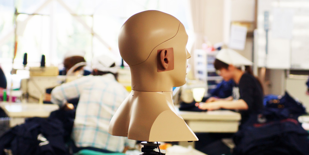一般家庭で使うミシンの音は「コトコト」という感じですが、こちらで使われる工業用ミシンはスピードが速いせいか、「ガー」という感じに聞こえます。