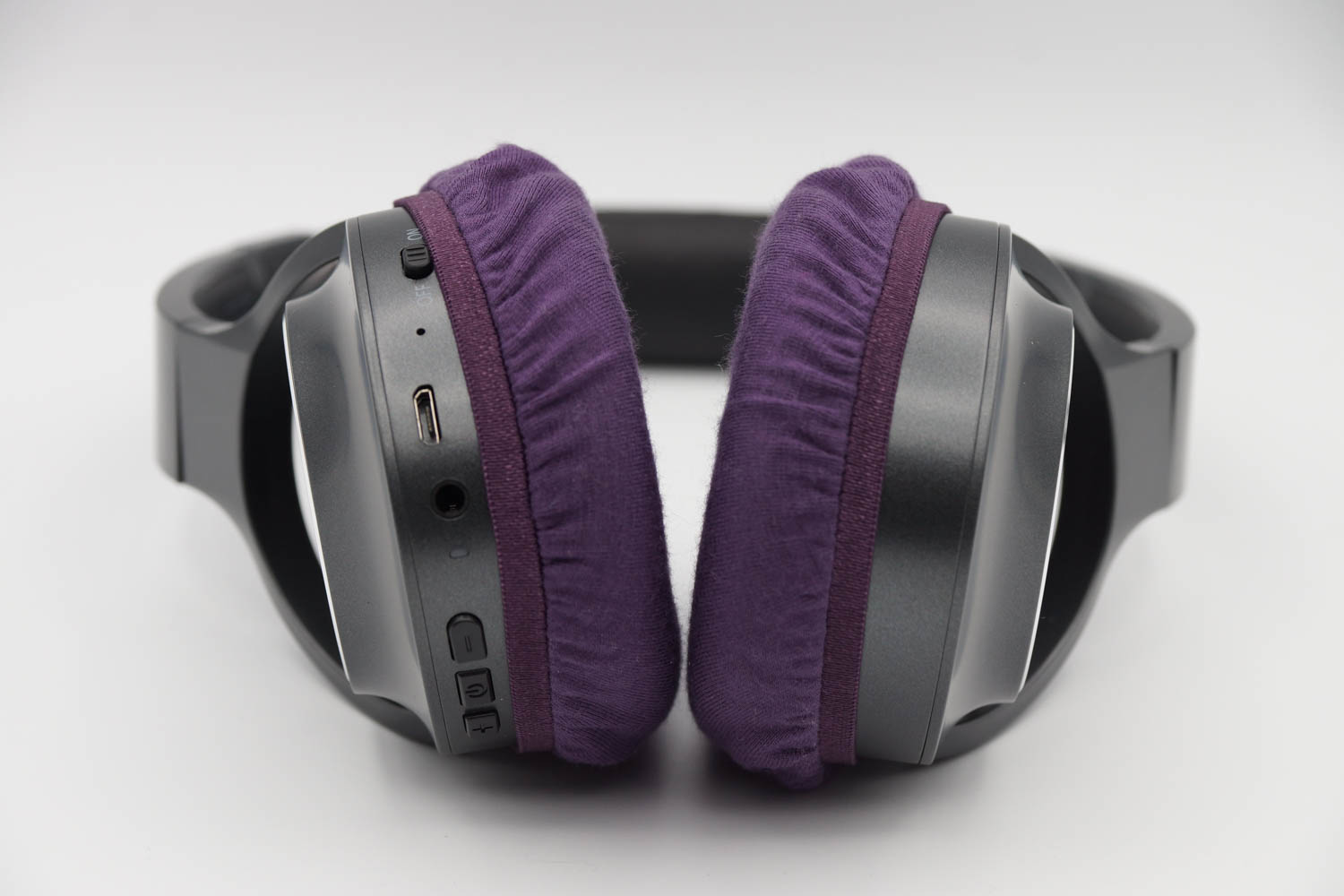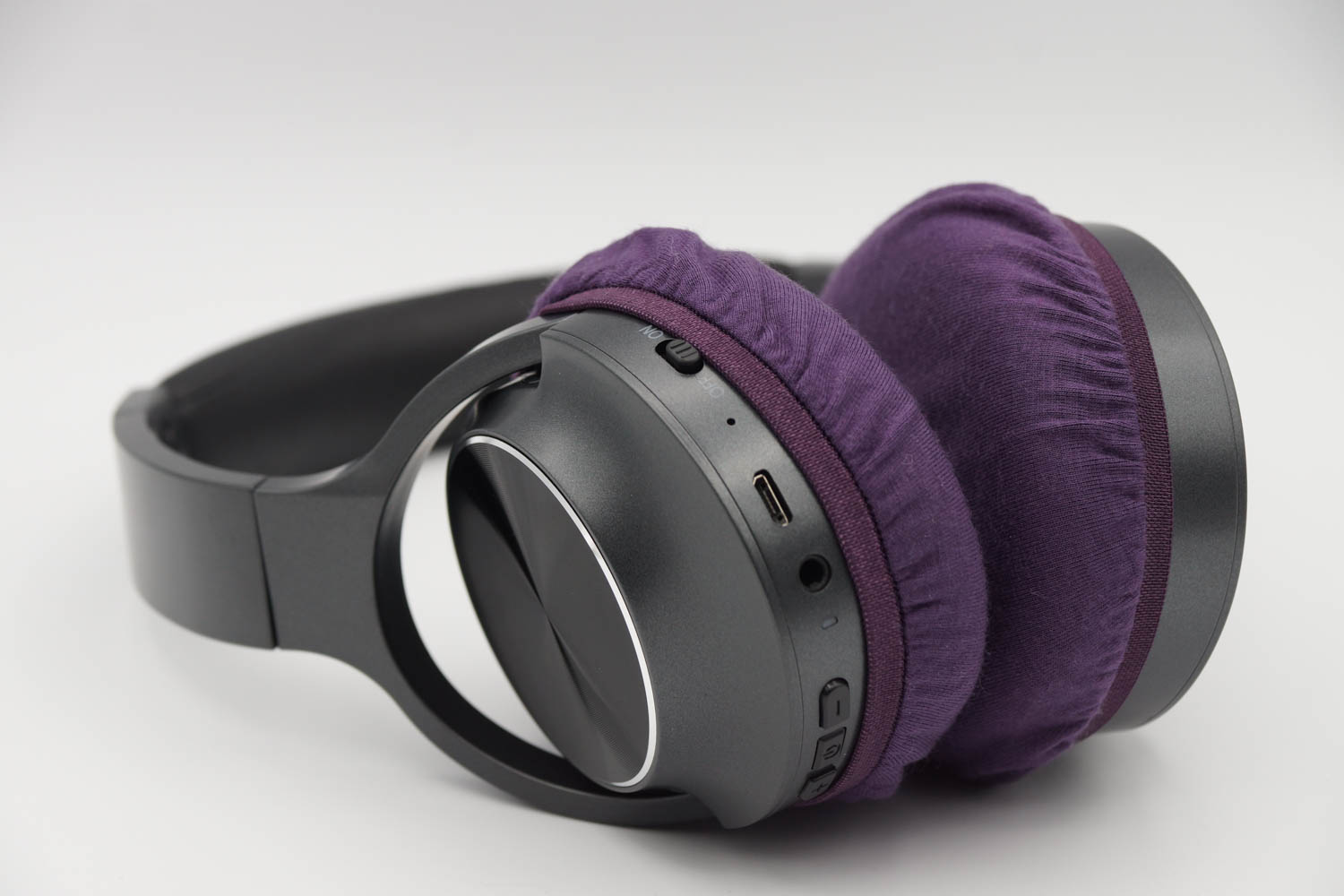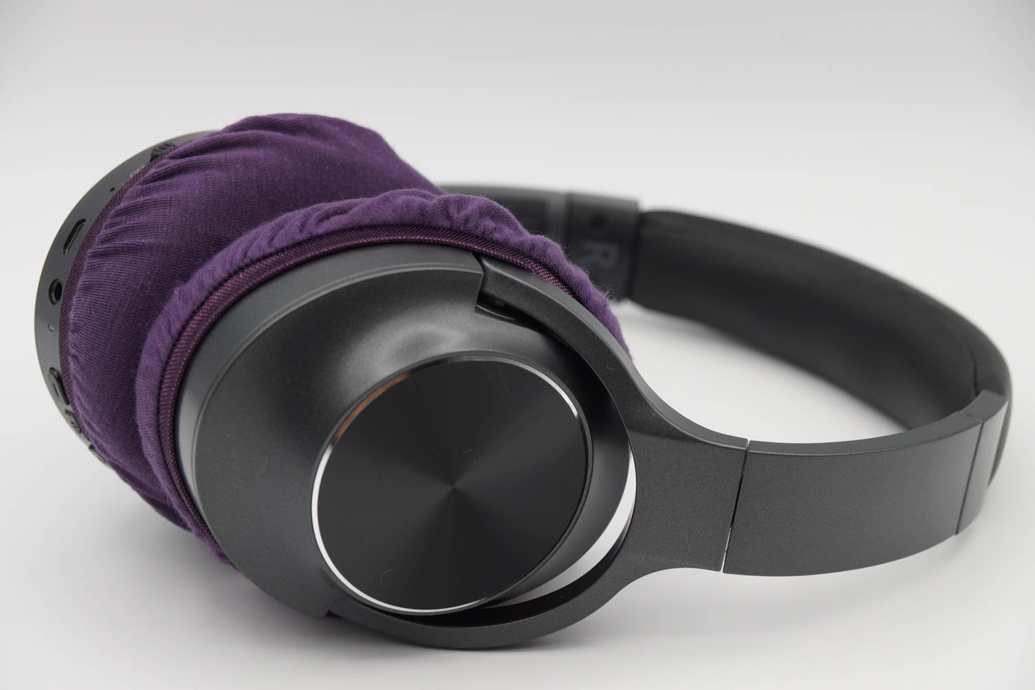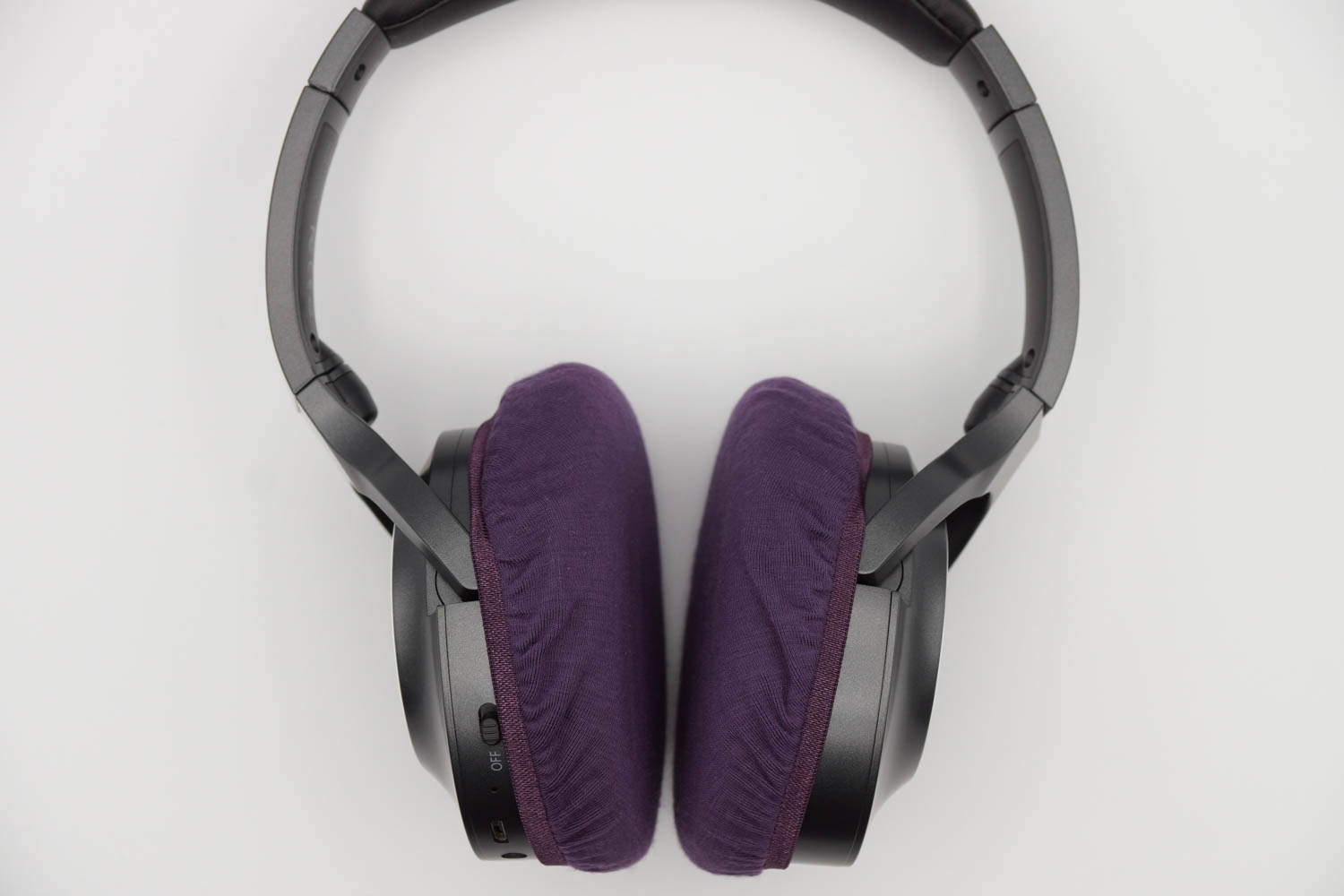右側のイヤーカップの側面にボタン類があり、あまり深く被せるとボタンが隠れてしまいます。その反面、浅く被せすぎるとカバーが外れ安くなってしまいます。ボタンの使いやすさと、カバーの取れにくさを両立するため、以下の被せ方をお勧めします。